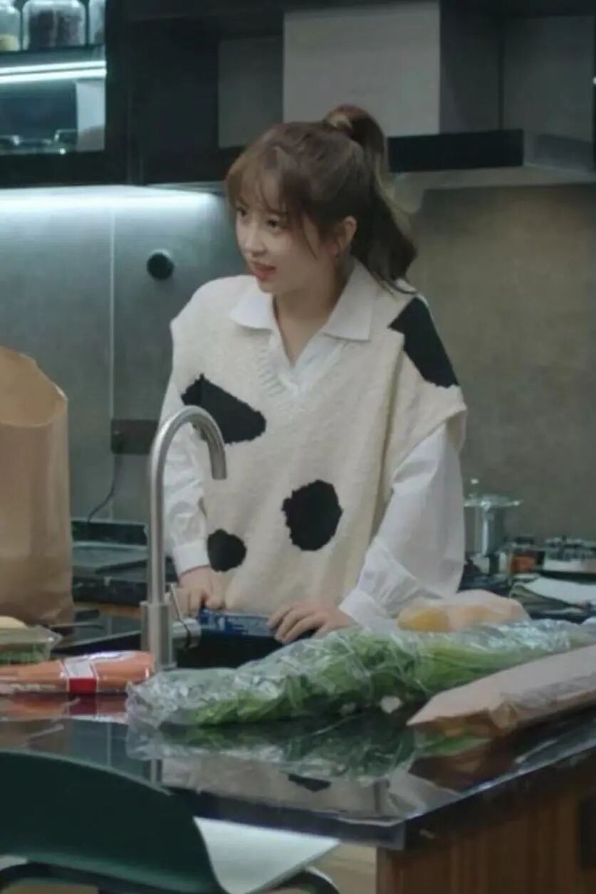 虞书欣在剧中饰演的初礼活泼可爱,在穿搭方面也元气感十足,非常适合日常生活中拿来借鉴。打造元气感的第一步,就是让外表看起来先“柔”下来,在初礼的衣橱中,经常能看到各式各样的针织服装,这也加持了她软萌、活力的少女感觉。不知道大家发现没有,初礼的穿搭总是会巧妙地运用各式各样的叠穿,一件针织衫如果感觉单调,可以通过叠搭的方式来增加层次感。带有可爱牛奶印花的针织背心,搭配白衬衫作为内搭,可爱感觉瞬间就来了,娇柔又不造作。实际上,初礼有着明确的穿衣风格,这种以甜美浪漫风为主,又带有一点学院风的感觉,正是babydoll Style的精髓所在。babydoll Style是一种充满年轻化的、甜美优雅的潮流,通过巧妙的服装搭配以及一些小配饰的点缀,就能搭配出如同娃娃般的可爱感。在款式上,babydoll Style的服装多以带有泡泡袖的款式为主,再搭配各式各样的衣领,像彼得潘领、衬衫领、娃娃领,都可以很好地提升Look的完整度。清爽有活力,时髦又减龄,很值得初入职场的姐妹来学习。不过毕竟身处职场中,如果穿得太甜腻,还是会让人有一种不够正式的感觉,这时候,下半身Look的选择就变得尤为重要了。学会适当做减法,以简洁的基础款下装为主,简单的牛仔裤作为加持,就是不错的选择。