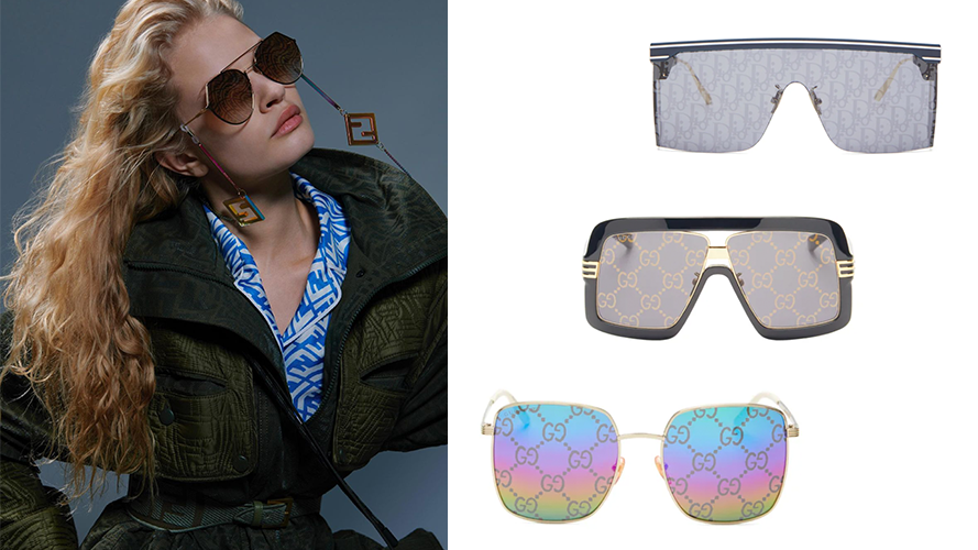 你猜,Logo如何才能爬上你的眼?Fendi、Dior、Gucci把透视Logo铺满镜片,在茫茫一片黑色墨镜中,你两眼“放Logo”,多特别!Logo镜片太阳镜属Fendi最多,老行家的最新款是夏日胶囊系列中的飞行员墨镜,棕黑配色,低调闷骚。Dior的这款镜片印有Oblique字母组合,银蓝色配色十分清爽,很适合夏天。Gucci的Logo太阳镜有彩虹款,骄傲月来一副,应景又炸眼。戴上口罩,Logo可以爬满半张脸。Marine Serre的口罩做了好多季,弯月Logo变着法儿在口罩上变换各种形态。Louis Vuitton的老花口罩是针织材质,夏天戴确实闷了点,但可以试试它家名为“LV Shield”的防护面罩,边缘和头戴的固定带都用的老花皮革,而且,前面的透明“挡板”在阳光之下会从透明变成深色,防晒遮阳功能绝佳。要是实在喜欢哪个Logo,又碍于囊中羞涩,画在脸上也不是不行。来,分享下你喜欢的Logo,说说为什么喜欢它?