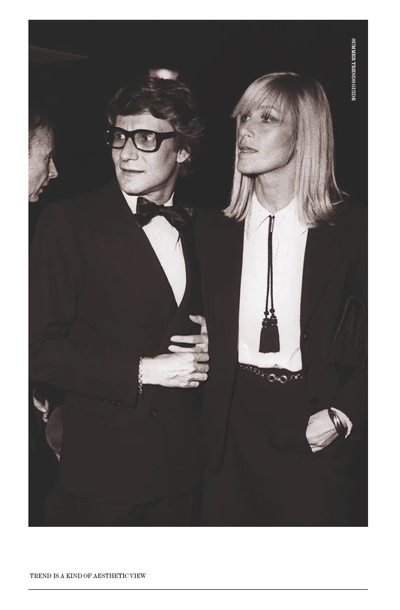 1967年,伊夫·圣罗兰偶遇了拥有一头金发和纤细身材的贝蒂·卡图,自此“Saint Laurent 精神” 有了定义,圣罗兰也开始借用男性元素来革新时尚。而直到现在,贝蒂依然是气场最强大的品牌化身,也同样验证了那句“Betty就是时代精神”。