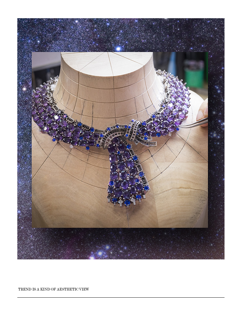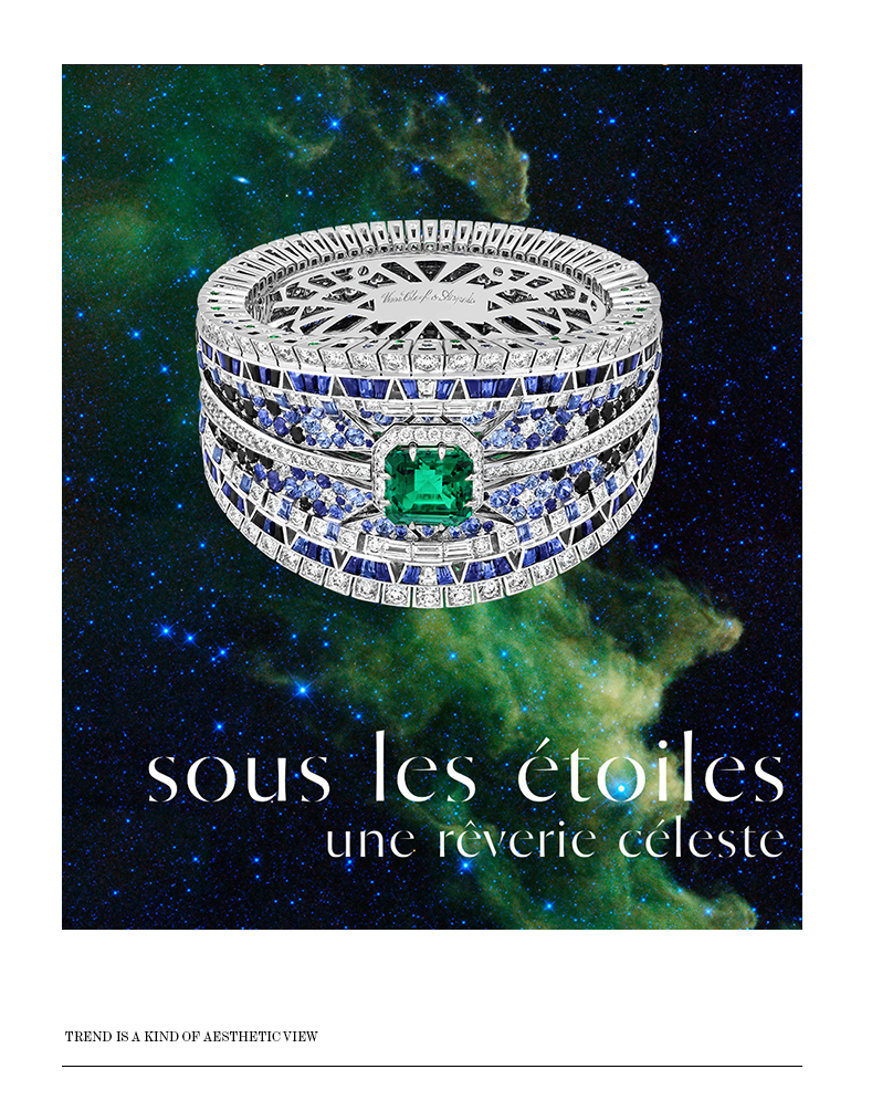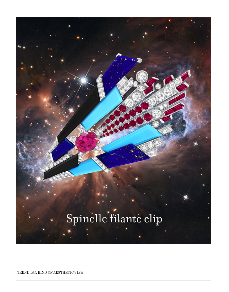 世家设计师从宇宙天文、星空获取灵感,创作了这次全新高级珠宝系列。用珠宝点亮沙漠,和浩瀚星空交织。