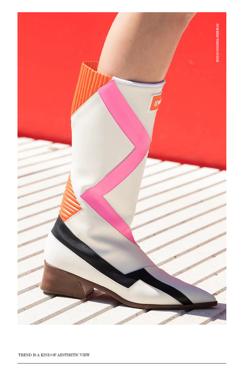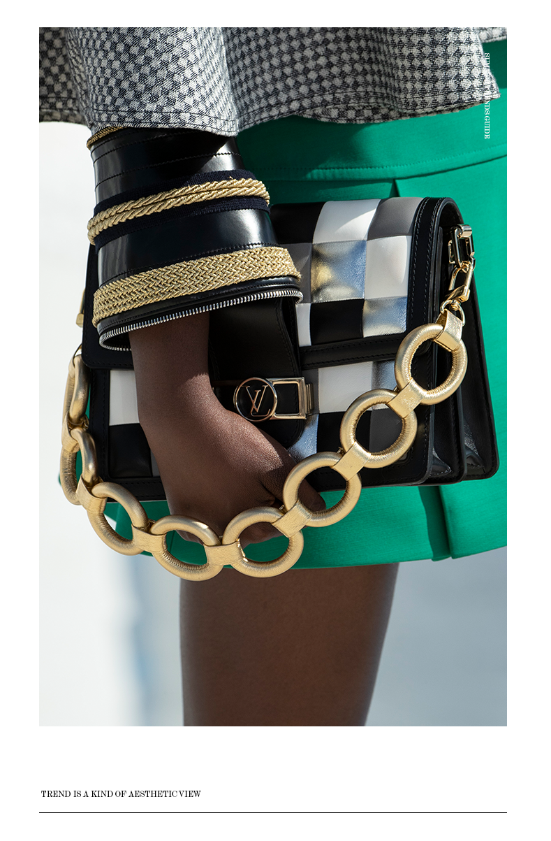 看完衣服,来说说包包和鞋子。其中这个月牙形monogram肩带包呼声最高,尖头的靴子造型也没落下,配色上多采用鲜艳的色彩碰撞,仿佛帅气的女战士。