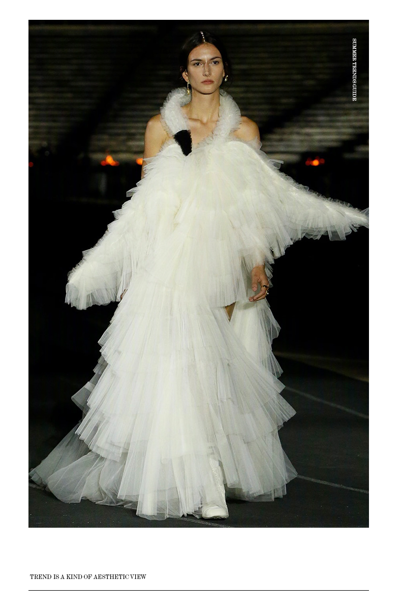 灵感来源于1951年拍摄的一组迪奥先生(MONSIEUR DIOR)设计的高级定制系列时尚大片。玛丽亚·嘉茜娅·蔻丽(MARIA GRAZIA CHIURI)还从超现实主义先锋乔治·德·基里科的作品中受到启发,他对于希腊的深刻回忆描绘出超自然景象,其间还探索了画廊主理人亚历山大·伊奥拉斯的世界,他与家乡希腊及其雅典别墅之间建立着深厚的联结。以及最后的压轴天鹅裙灵感则来自于在1935年Marlene Dietrich参加变装舞会时的装束。