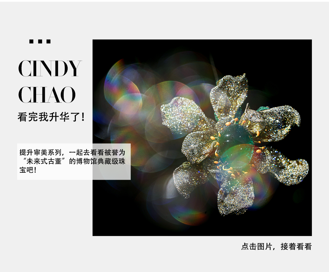 还在最近举办了名为“无尽之境——CINDY CHAO艺术珠宝大师展”的全球首次大展,打造了一个三层沉浸式珠宝美学体验空间。