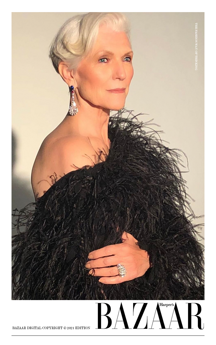 对于更新迭代如此迅速的时尚圈来说,“年龄”这个词,同样在时尚圈一直都是敏感的存在。73岁的传奇模特Maye Musk让我们看到了不同的一面,尽管满头白发,但每次出场依旧神采奕奕,谁看到她都只想说一句:原来敢时髦和年纪真的无关。登时尚周走秀、拍杂志封面,各项时尚活动几乎一个都不落,哪怕和年轻超模站在一起也丝毫不输。其实Maye Musk从15岁就开始了她的模特生涯,在做模特的同时,还完成了营养学学士学位。到了享清福的年纪,也没有放弃自己的热爱,横跨60多年,继续做着自己心爱的模特和营养师事业,始终以追求高品质的生活态度来要求自己。作为风格ICONS,Maye Musk穿衣风格百变,不过感受最多的就是从内而外散发出的气质,这种淡定和从容,来源于她的阅历、她的学识、她对生命和生活的感知。  Maye Musk曾在书中谈到了自己对时髦的追求,虽然我们无法改变年纪,但却可以展示自己年纪独有的智慧和魅力。  随着年龄的增长,在T台上的她越来越像一个女王,让人不容亵渎,时尚与美丽跨越了年龄的限制,绽放了独属于她的光彩。说到底,如今对于时尚边界感的判断,早已经跳出了胖、瘦、美、丑、年轻或是年老,而是体现在更为深层的方面。它从举止、从气质出发,它是比单纯追求时尚更大的范畴,是魅力、是吸引力,它让时尚有了更丰富的内涵。