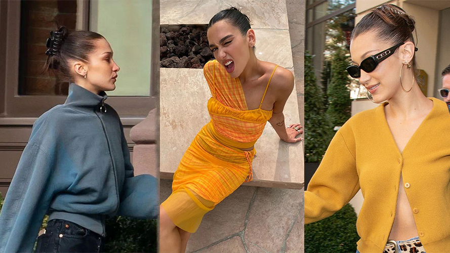 千禧年用鲨鱼夹,可不是来打造蓬松自然的发型,反而追求的是紧和光滑。额前可以拨出点头发,注意,是那种刻意的两缕,模板可以参考Bella和Dua Lipa。学会Y2K发型,善用鲨鱼夹,发胶和油头不可怕。