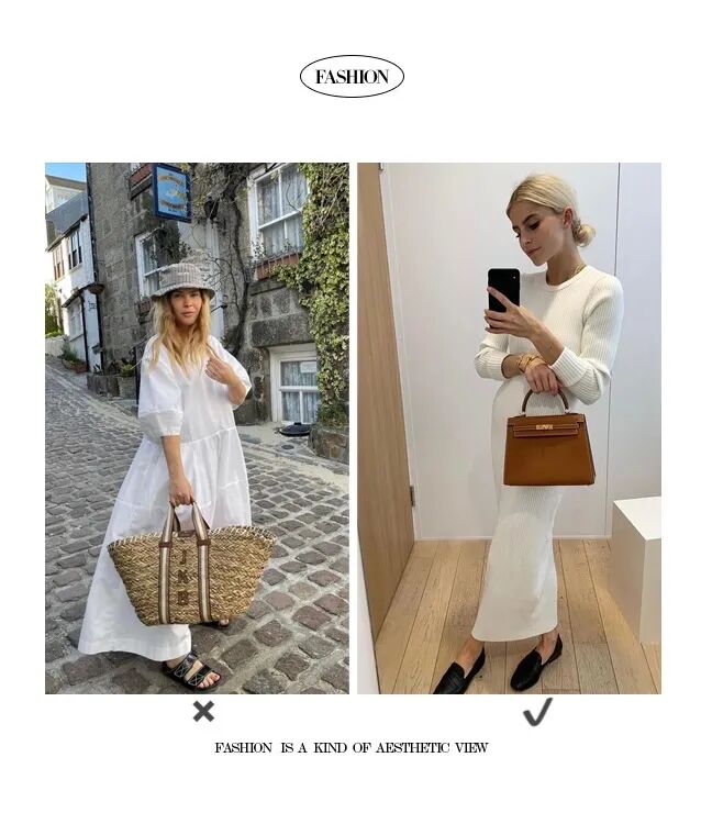 如果你的上衣和下装都是选择宽松的款式,塞衣角就可以帮你找到腰线,不会给人一种从上到下都非常臃肿的感觉。叠穿外套的时候可以将上衣全塞进裤子,这样可以优化身材比例,小个子一定要学!很多女孩对连体衣都有戒不掉的爱,特别是连衣裙,既不用考虑搭配,又自带女人味,太香了!直筒裙和A字裙看上去很森系,但实在不适合小个子女孩,再好的身材也被遮挡得严严实实。小个子女生在挑选长裙时,可以选择有明显收腰的款式,防止模糊曲线,显矮又显胖。小个子女生尽量避免选择及脚踝款式的长裙,视觉上比较压身高。选择到小腿肚下方的长度更加友好,刚好可以露出最纤细的脚踝~如不巧是没有脚踝的“蔡文姬女孩”,选择短款连衣裙搭配长筒靴也是个不错的选择,既显高又很有气场。讲完了比例,再来输出一拨搭配干货,这也是塑造高级感的重点。小个子博主Beatrice Gutu是穿衣具有高级感的代表人物,细品她的穿搭,基本都是通过同色系来完成的。同色系在搭配时可以巧妙模糊掉身材的短板,视觉上增加整体感,自带大女人气场。黑、白、灰、咖是最常用的颜色,通过同一材质的上下顺延,简约又高级!这种组合既可以单穿,也可以出门时叠穿外套,简单不繁杂,充满时髦小心机~想要造型简洁干净,又想整点花活,解决沉闷单调feel,叠穿就派上了用场。春夏穿完的衬衫不要急着收起来,叠穿在毛衣里轻松打造层次感。要注意,下半身不要选择太宽松的款式,不然看起来会显得臃肿,紧身裤、直筒裤效果会更好些~Office Lady可以将西装和衬衫进行组合,摩登又高级,绝对不会单调~如何让自己的Look看上去更加活力有朝气?那就在造型中融入亮色块吧,层次分明,让人一看就很“哇塞”!初学者可以先从配饰开始,让亮色系的帽子或手袋成为造型的点睛之笔。进阶穿法就是把小亮块转换为大亮块,任何亮色与白色组合都不会出错。饱和度高的大色块自带气场,怕拿捏不住可以用黑白色来平衡一下~王者的玩法当然就是撞色咯~不过这种穿法非常考验对色彩的驾驭能力。优先级:低饱和+低饱和>低饱和+高饱和>高饱和+高饱和。如果对色彩没那么敏感,能把初级和进阶的穿法运用自如就已经很有一套了。今天的穿搭示范都是小个子博主们的亲测,是不是显高还显瘦?不要被身高限制自己的穿搭,Get这份小个子穿搭指南,今年秋冬你也能又美又飒~©版权声明:时尚芭莎网编辑时尚芭莎,本文系时尚芭莎网独家原创,如需转载请注明出处。