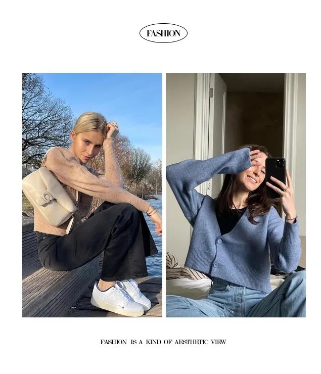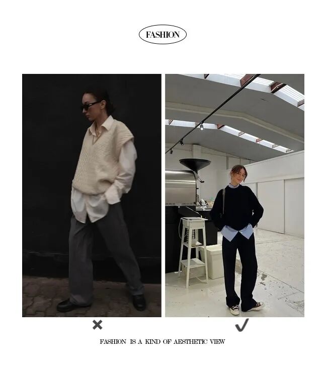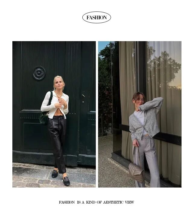 同为“158 Club”的时尚博主Beatrice Gutu也很爱用低饱和色系时装演绎高级感。还是那句话:穿对了衣服,小个子也能拥有一米八的既视感。今天,我们就来聊一聊小个子女生的穿衣搭配,跟博主们学学这个秋冬怎么穿~在学习穿衣搭配之前,姐妹们一定要了解一个重点:是人穿衣服,而非衣服穿人。不要看着某一个款式流行,或者别人穿着好看就盲目下单,找到人与服装之间的联系,才能知道如何协调比例,彰显时尚品味。“上短下长”是将上衣的长度缩短,下衣的比例拉长,这样可以在视觉上将腰线往上移,轻松穿出大长腿既视感。今年超火的短开衫就可以用来随心配,短上衣+长裤的组合尽显大长腿。天气比较温暖的时候可以在下摆解开几粒扣子,增加一点露肤效果,温柔中透着点小性感。稍微冷一点在里面穿一件白色打底,叠穿也很能凸显气质。想在外面叠穿外套的时候也一定要把“提升腰线”牢记于心,内搭Crop top是首选。如果没有那么多短上衣怎么办?那就要好好学习塞衣角大法了。把衣摆全部塞进裤子里可能会略显臃肿,塞一半或塞一角足矣,显高的同时还会让人觉得你很有风格。这一招看起来简单,但效果非常显著,是平凡的五五分还是优秀的三七分,全看它了。