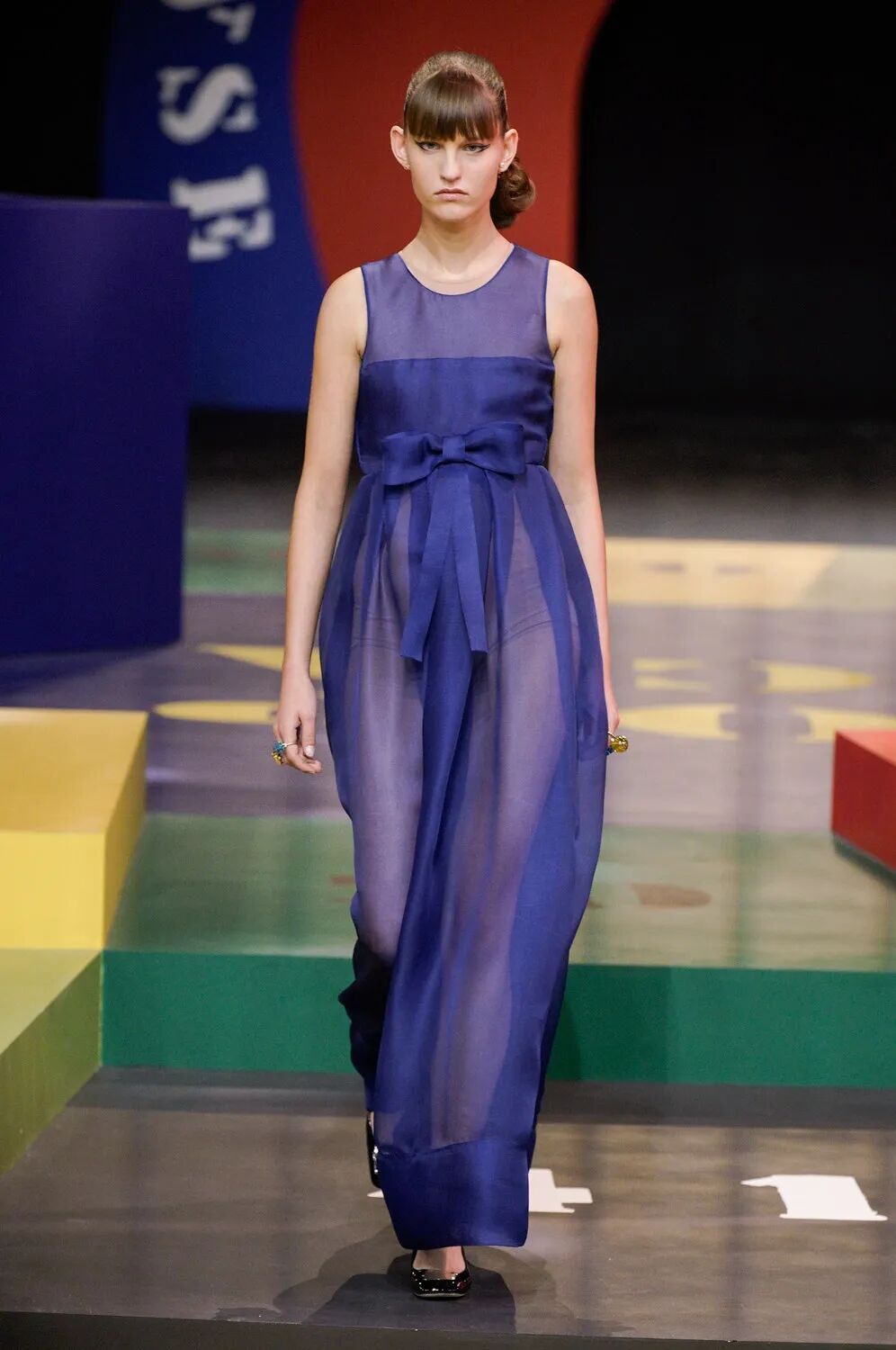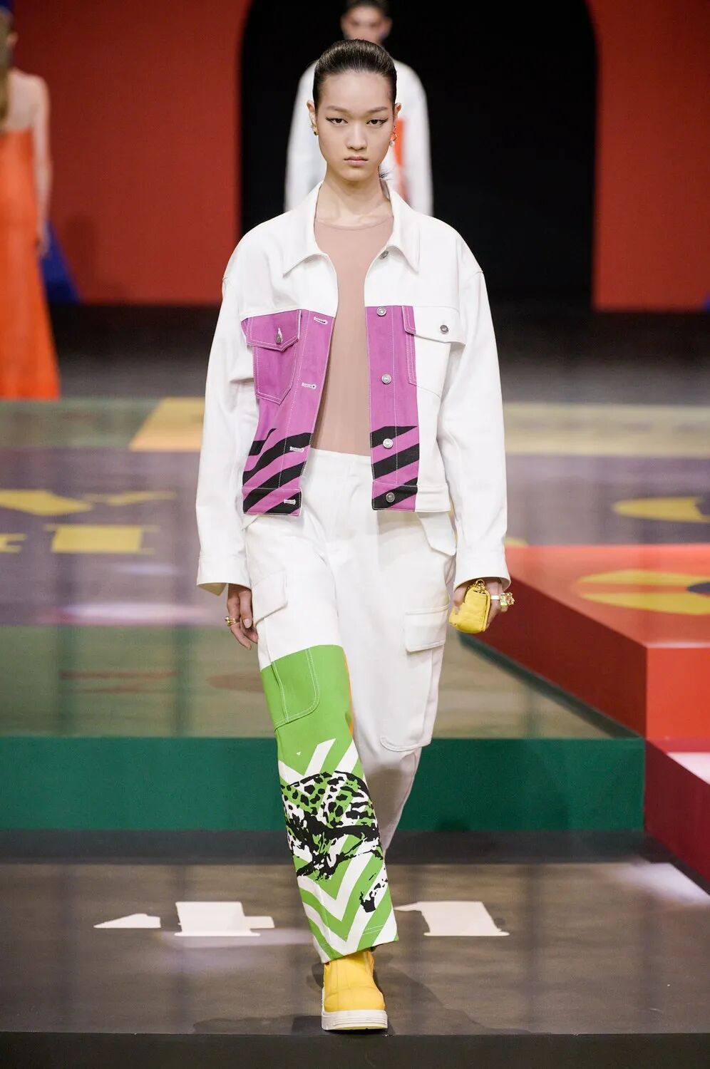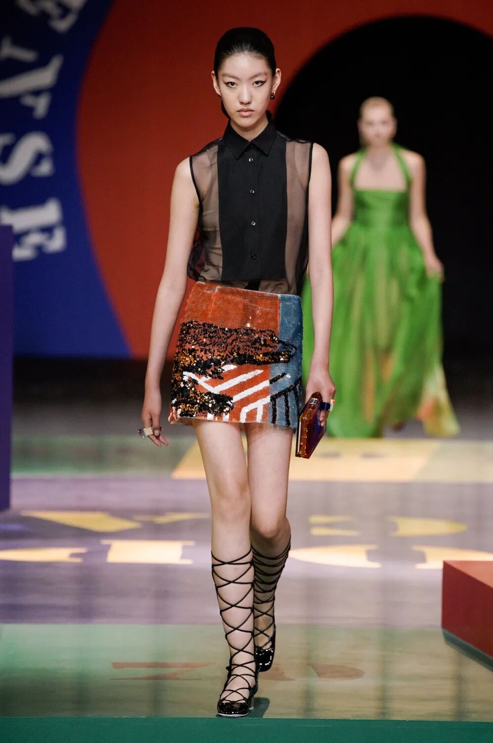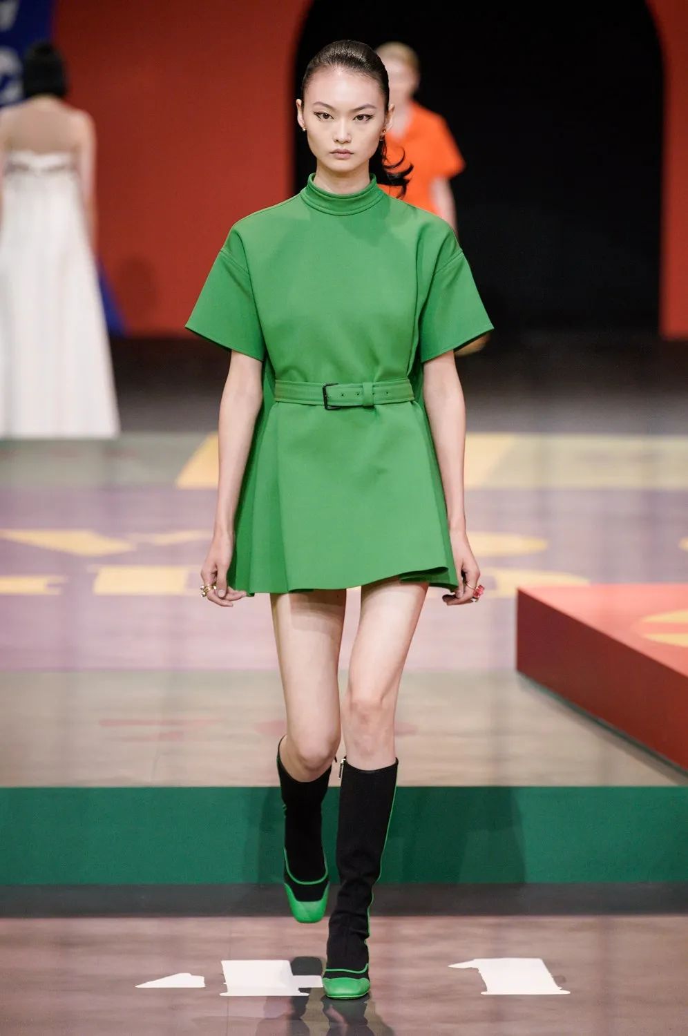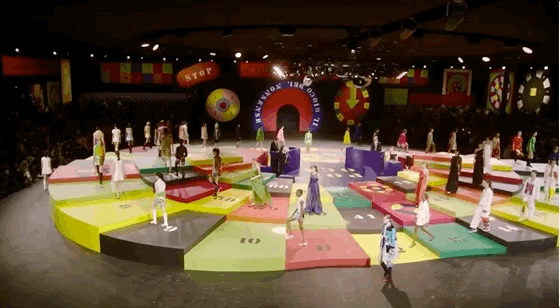 北京时间9月28日21:00,黑暗的秀场被镁光灯从四面八方打亮,85名模特在由各种糖果色块拼接的圆上早已定位,音乐响起,让我们开启这场轮盘游戏。
