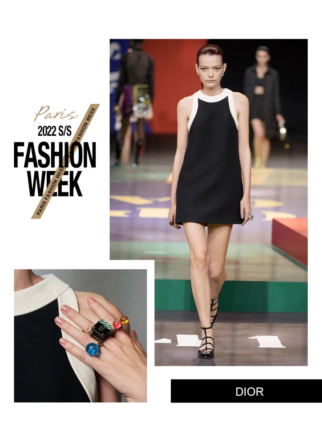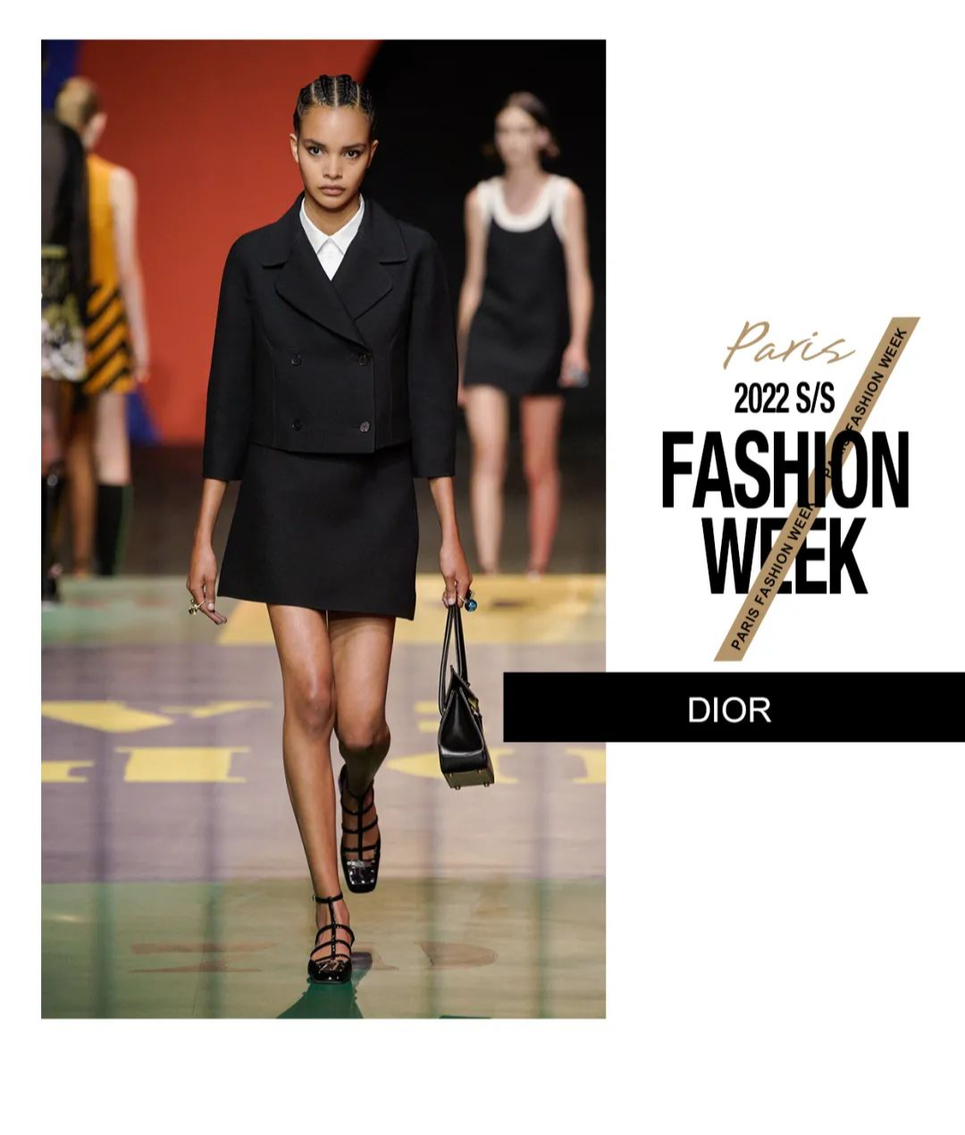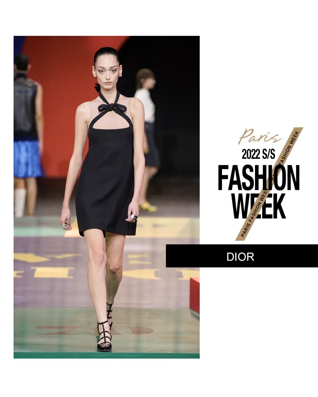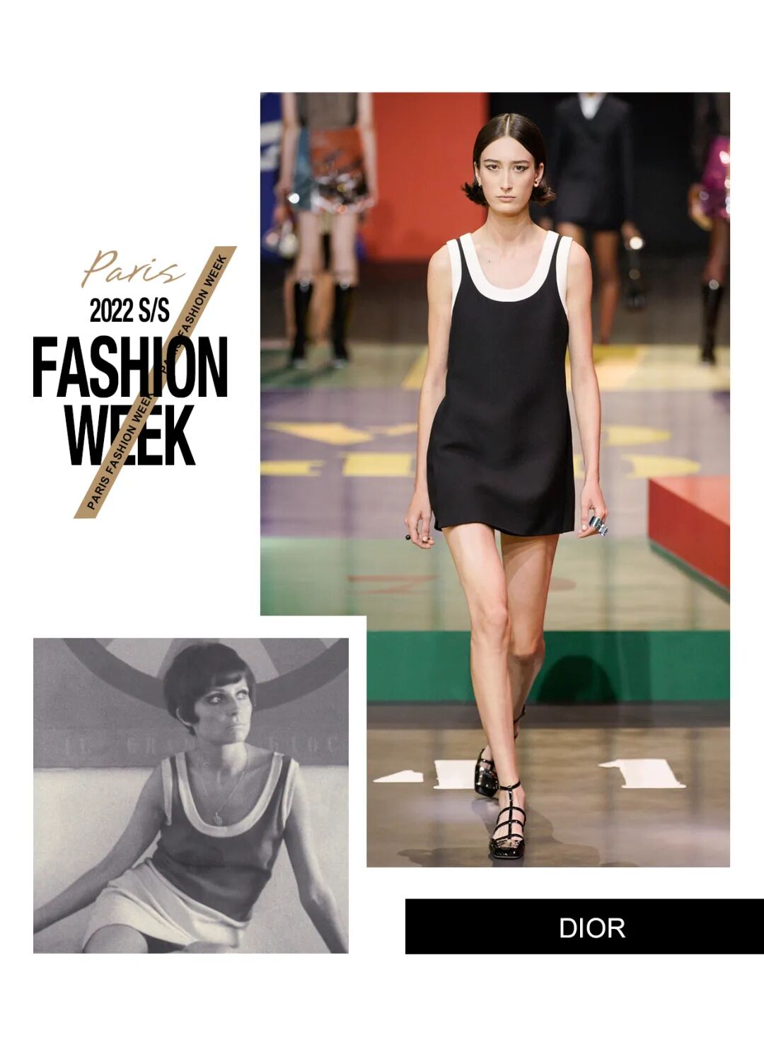 本次Maria Grazia Chiuri请来了艺术家Anna Paparatti一起探索属于上世纪60年代的辉煌时刻。Maria从Christian Dior的档案库中发现60年代到80年代末期的主设计师Marc Bohan所设计的Slim Look,以其考究板型延续品牌基因,并与当时盛极一时的罗马夜店Piper Club风格结合,唤醒了Dior New Look在21世纪的全新演绎。