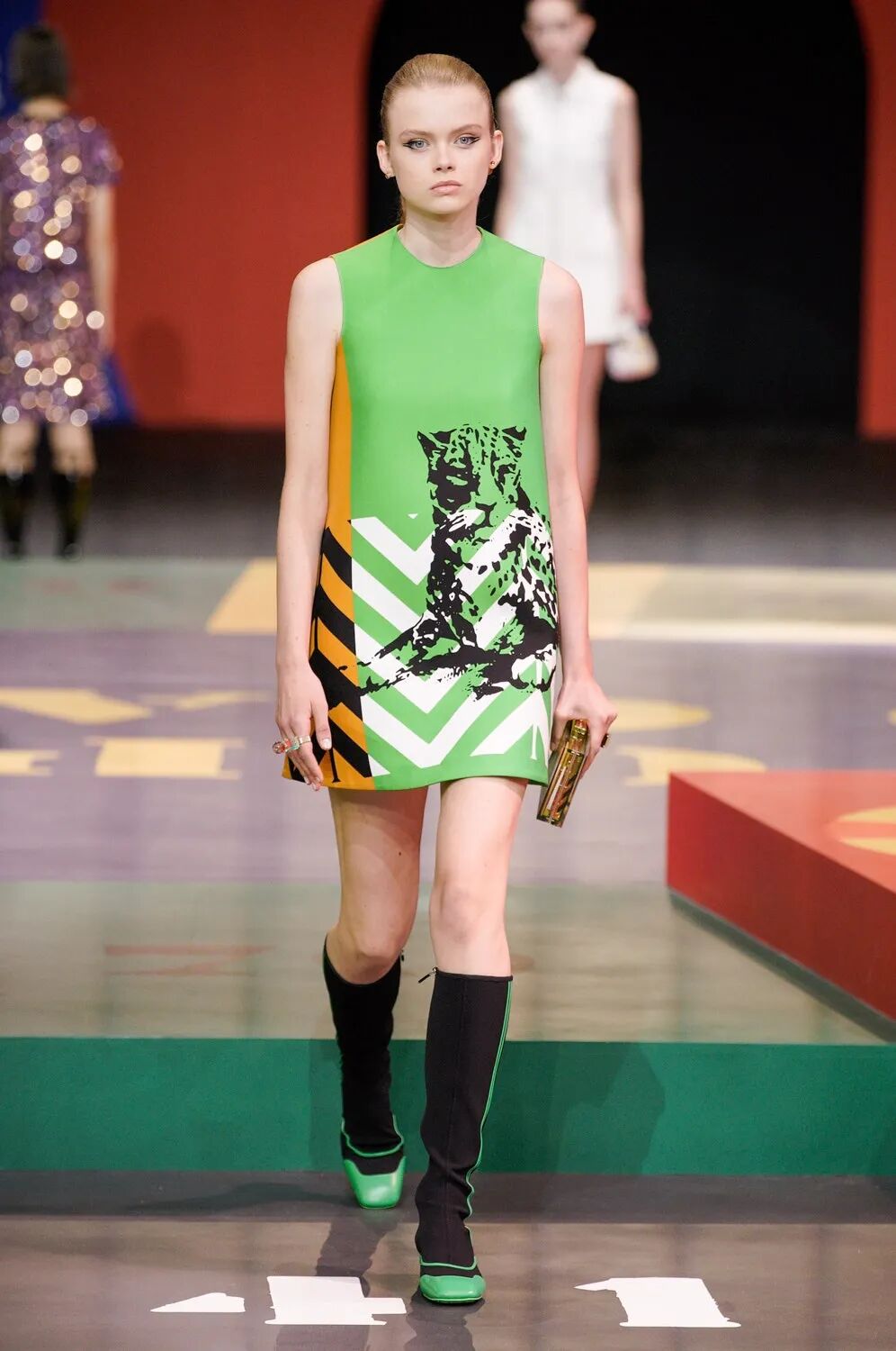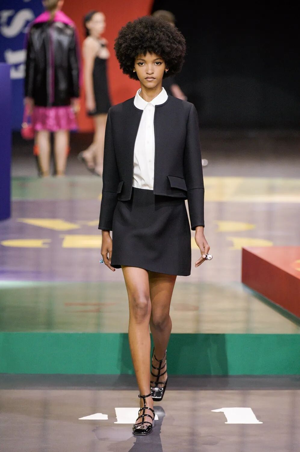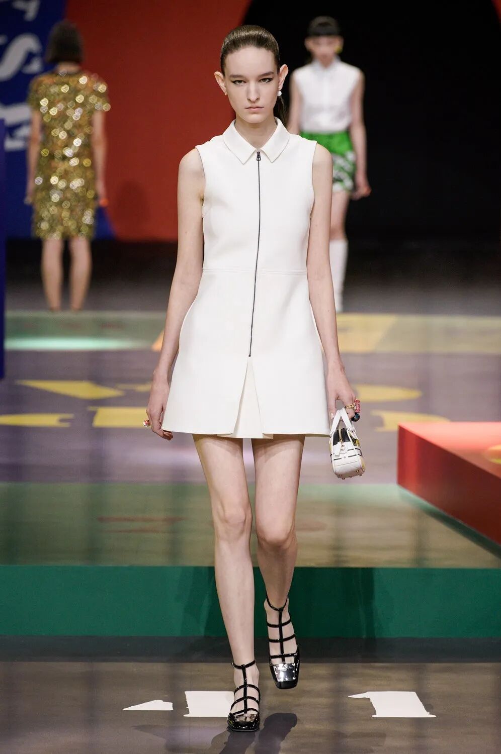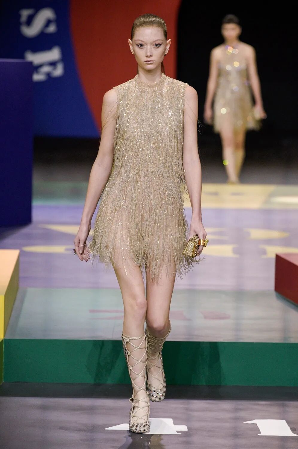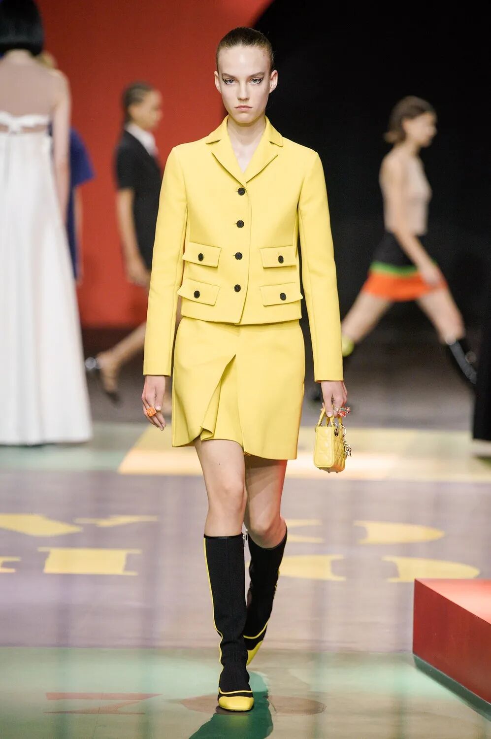 本次Maria Grazia Chiuri请来了艺术家Anna Paparatti一起探索属于上世纪60年代的辉煌时刻。Maria从Christian Dior的档案库中发现60年代到80年代末期的主设计师Marc Bohan所设计的Slim Look,以其考究板型延续品牌基因,并与当时盛极一时的罗马夜店Piper Club风格结合,唤醒了Dior New Look在21世纪的全新演绎。