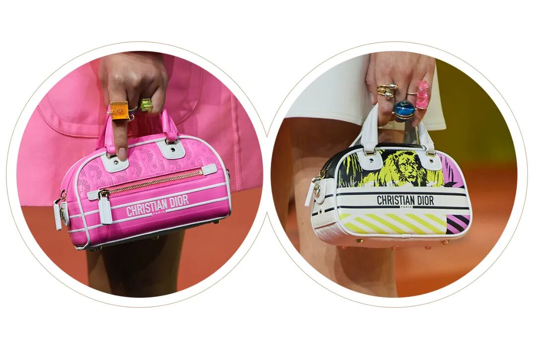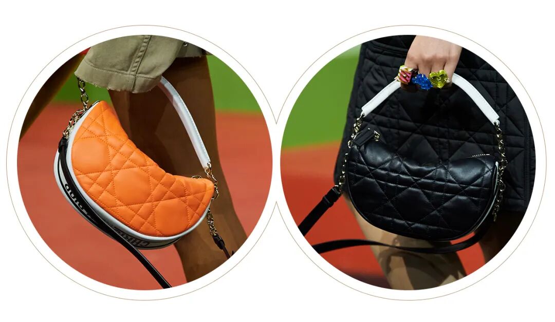今年全新推出的保龄球包和半月包细节做工上也很考究,保龄球包硬挺的包身可以看出皮质的优良,就连包底都加上了Dior经典的衍缝菱格纹压花图案,而半月包则更加柔软、有女人味,设计师还贴心地提供了手提和肩背两种方式,让包包在日常中拥有更多搭配空间。