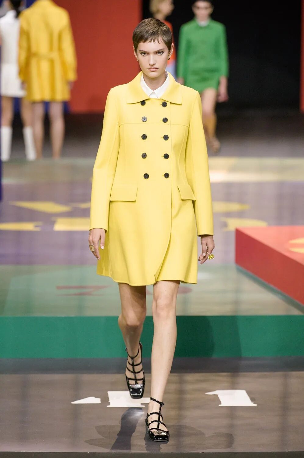 用上世纪60年代Marc Bohan所设计的Slim Look开场再合适不过,不同于Christian Dior先生时期的New Look造型,Slim Look以低腰裙和Jacqueline Kennedy着装风格为灵感创造出属于60年代的优雅格调。