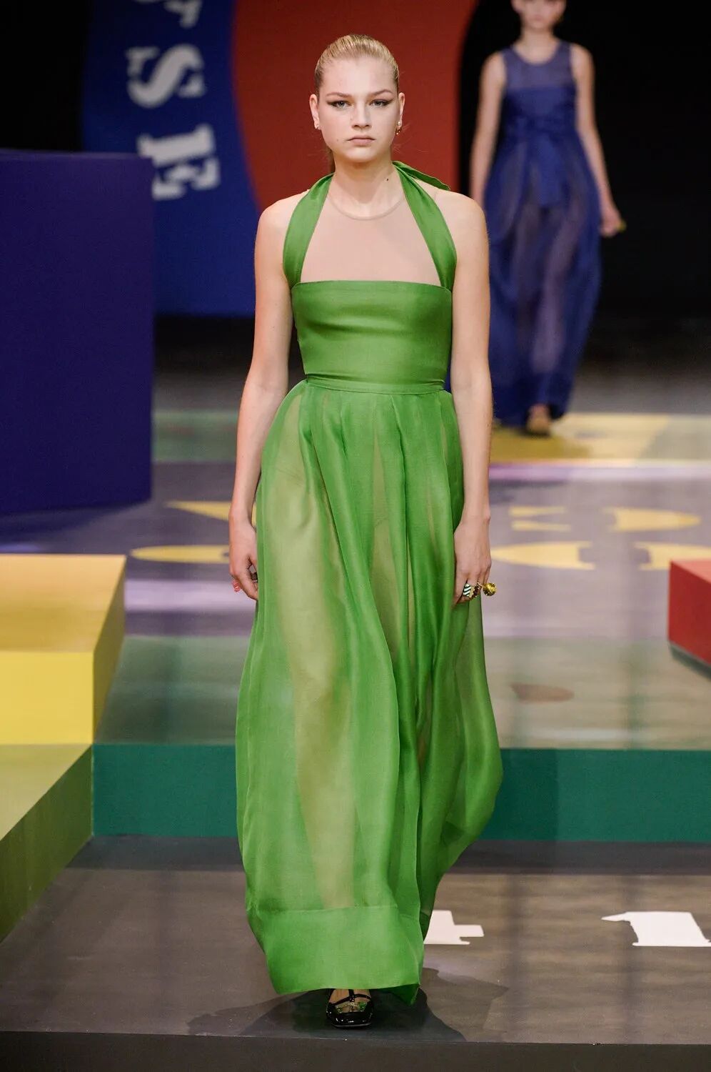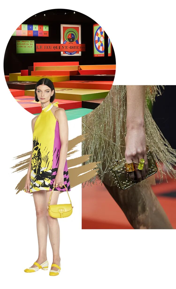 在地球另一端的法国巴黎,Dior女装设计师MariaGrazia Chiuri就从艺术家Anna Paparatti的代表作——《无稽的游戏》中获得了秀场布景灵感,在巴黎上演了一场华丽而又荒诞的色彩游戏。
