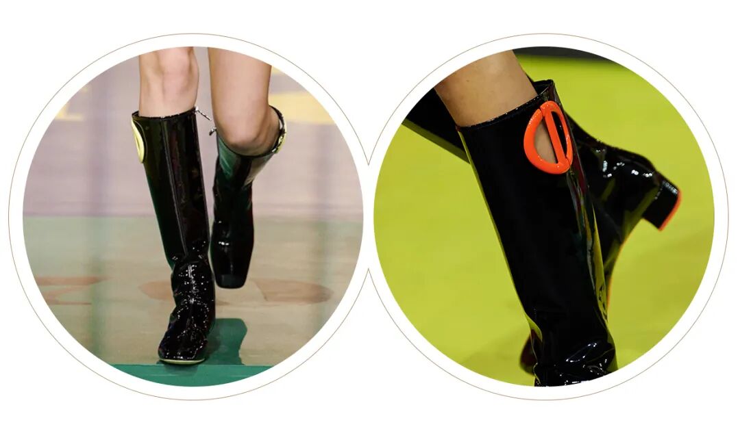 秀场上几双与迷你短裙搭配的靴子,似乎拥有成为Dior这季鞋履爆款的资本。这种名叫摇摆靴 (Go-go Boots)的靴型起源于60年代中期,是当时跳摇摆舞时所穿的靴子,与经典的迷你短裙搭配,就是当时最时髦的穿搭。