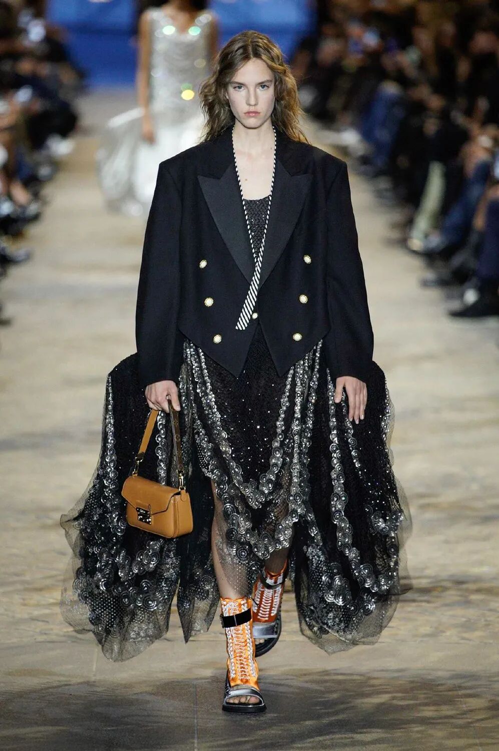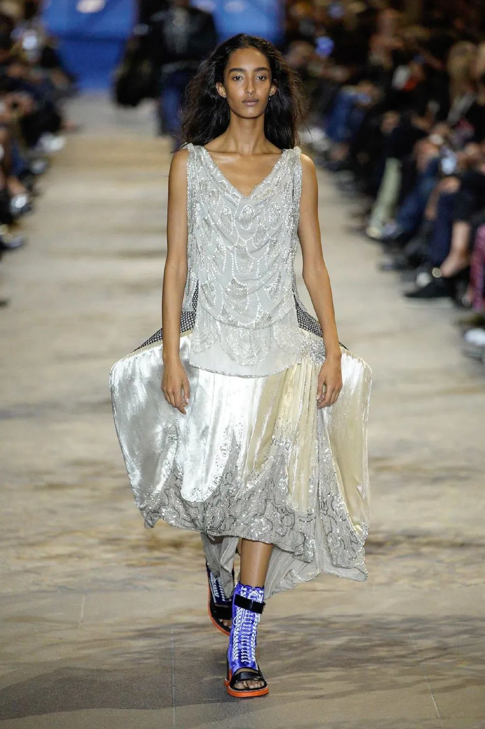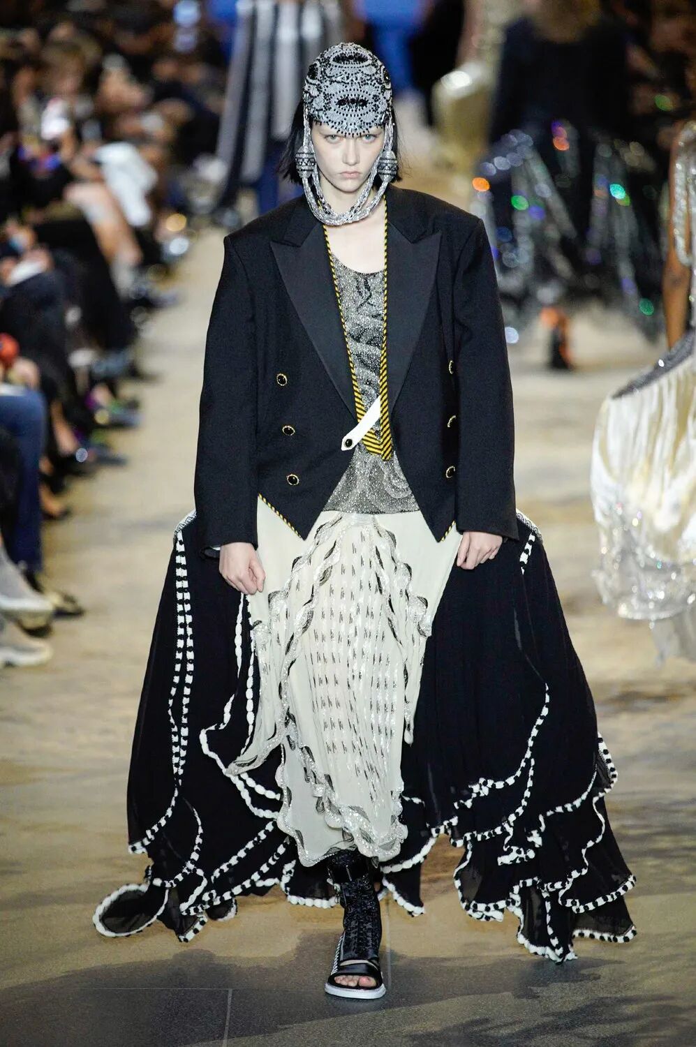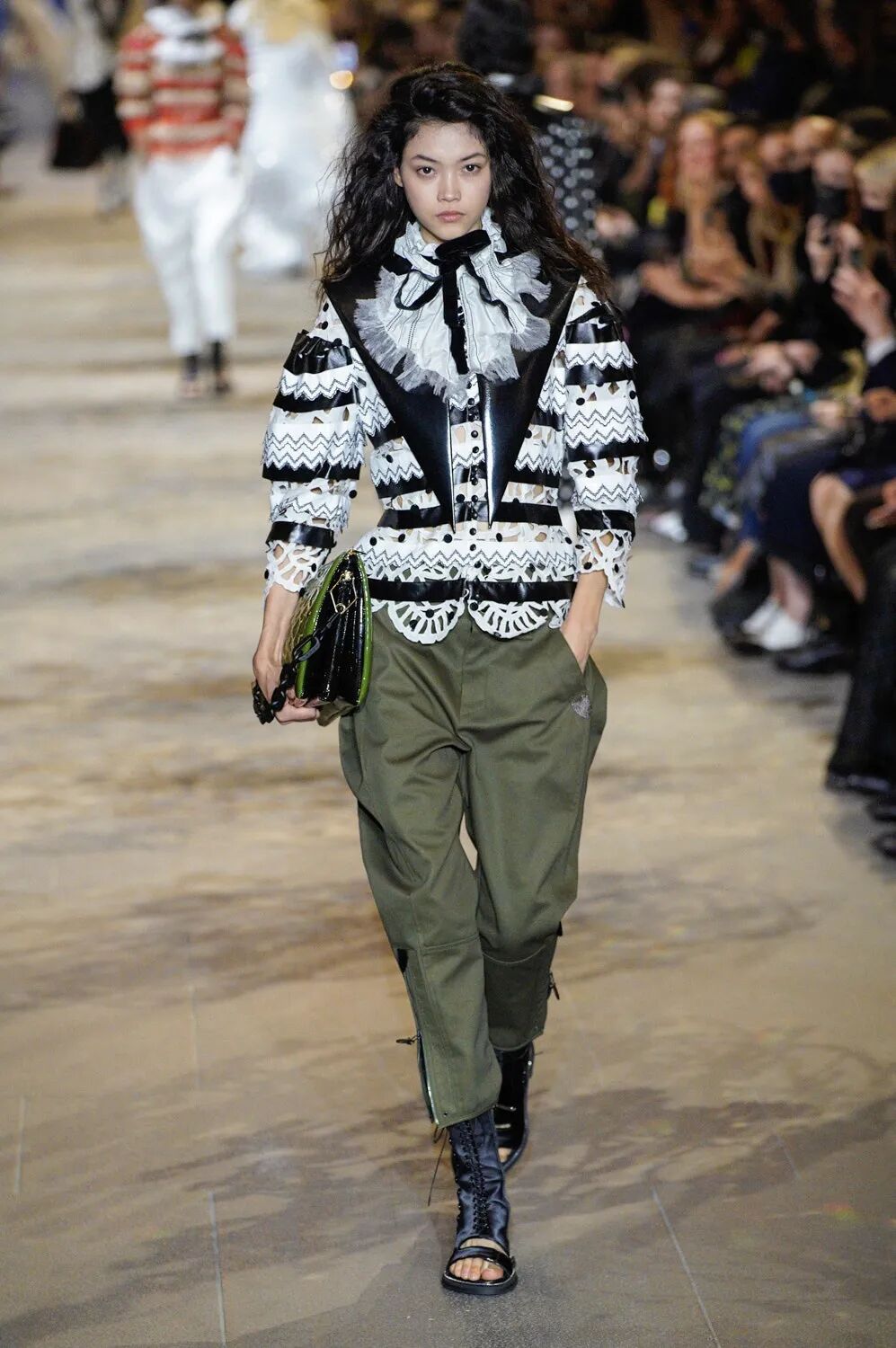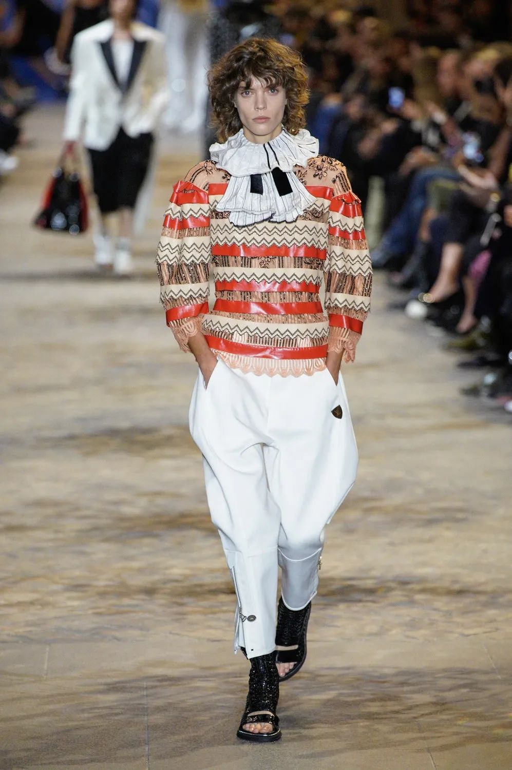 徘徊于过去、现在和未来之间不确定的领域,将遥远和近代的时尚历史与现代规则融为一体。这一次Ghesquière依然扮演着他最擅长的时间旅行者。