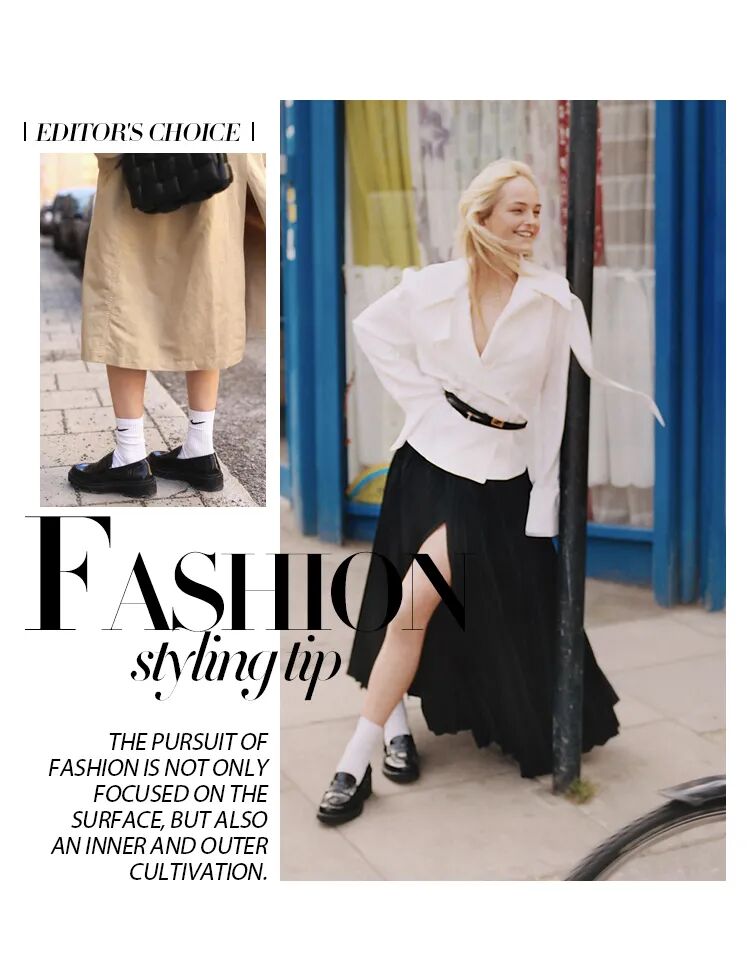 想更有少女感的,还可以挑战一下中筒袜或及膝袜。用它搭配乐福鞋,少女气息和中性气质相碰撞,甜酷女孩就是你!说到底,乐福鞋的流行也是当下时尚圈追求舒适感的一种体现。过分刻意地凹造型已不再是时尚的主流。当一双随性舒适的乐福鞋就能轻松打造出easy chic的风格,谁还能拒绝这种舒适度与时髦感并存的单品呢?这个秋冬是时候入手一双乐福鞋了,你的新鞋准备好了吗?
