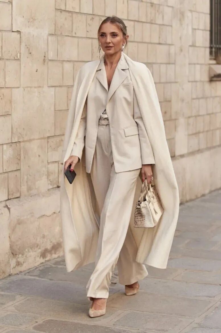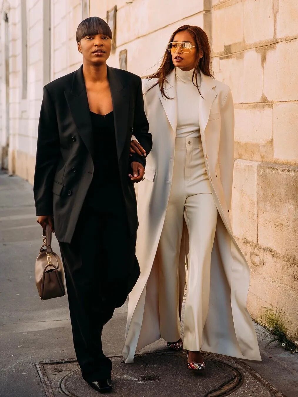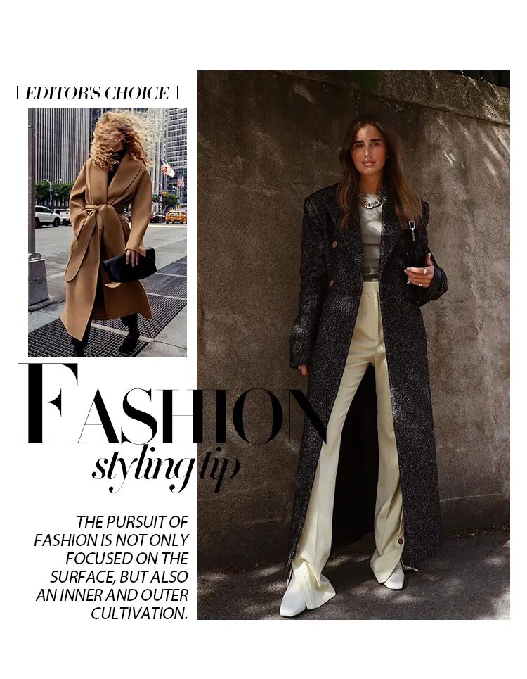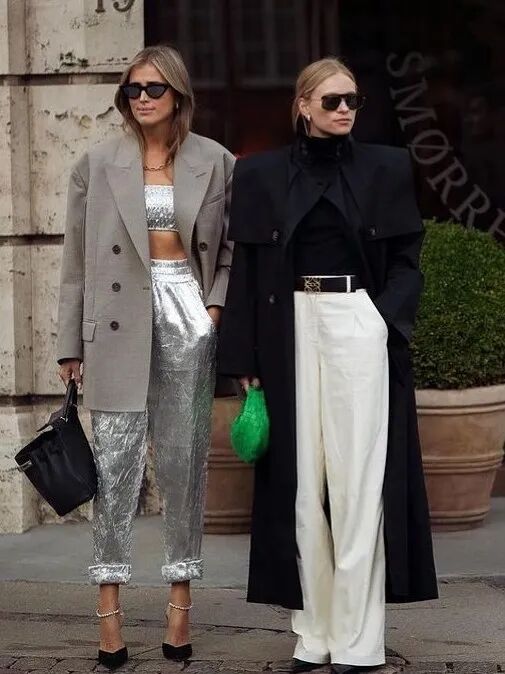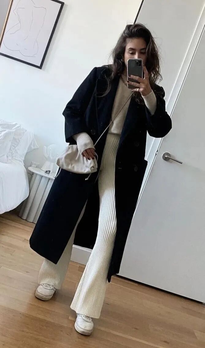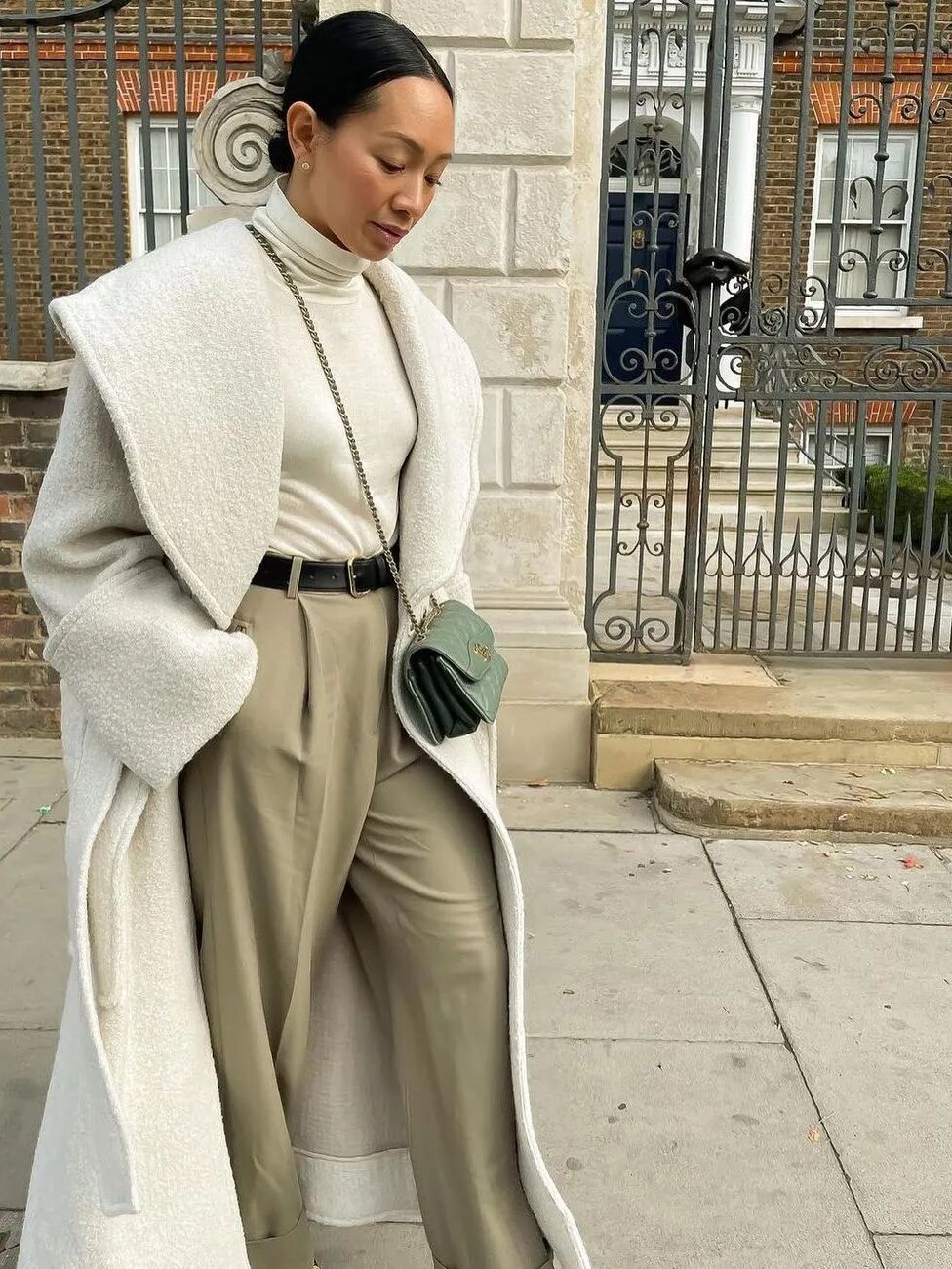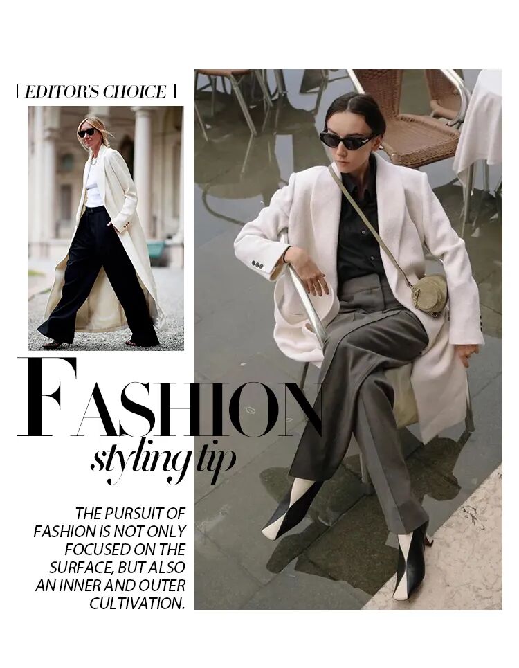 超长大衣和阔腿裤也是绝配,两者都是带大气场单品,搭配在一起便能穿出走路带风的气势!西装款的阔腿裤很适合职场女性来凹造型,不仅遮肉显瘦还能拉长腿部比例,特别有女精英的飒爽感觉。中间叠穿西装外套,成套穿着,这样的造型通勤感更强。日常无须花费过多的时间搭配,大衣一穿上便能出门。想要更温柔的,还可以将阔腿裤换成针织材质,换上运动鞋或是高跟鞋都能带来不同的时髦感。超长大衣和阔腿裤搭配还有一个穿搭的关键,阔腿裤尽量要选高腰款式,并且记得把大衣敞开来穿,这样才能最大程度突显腰线显腿长。