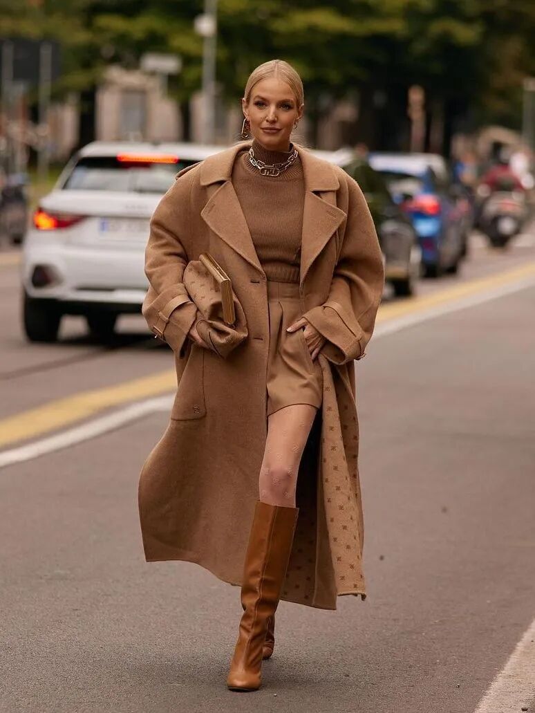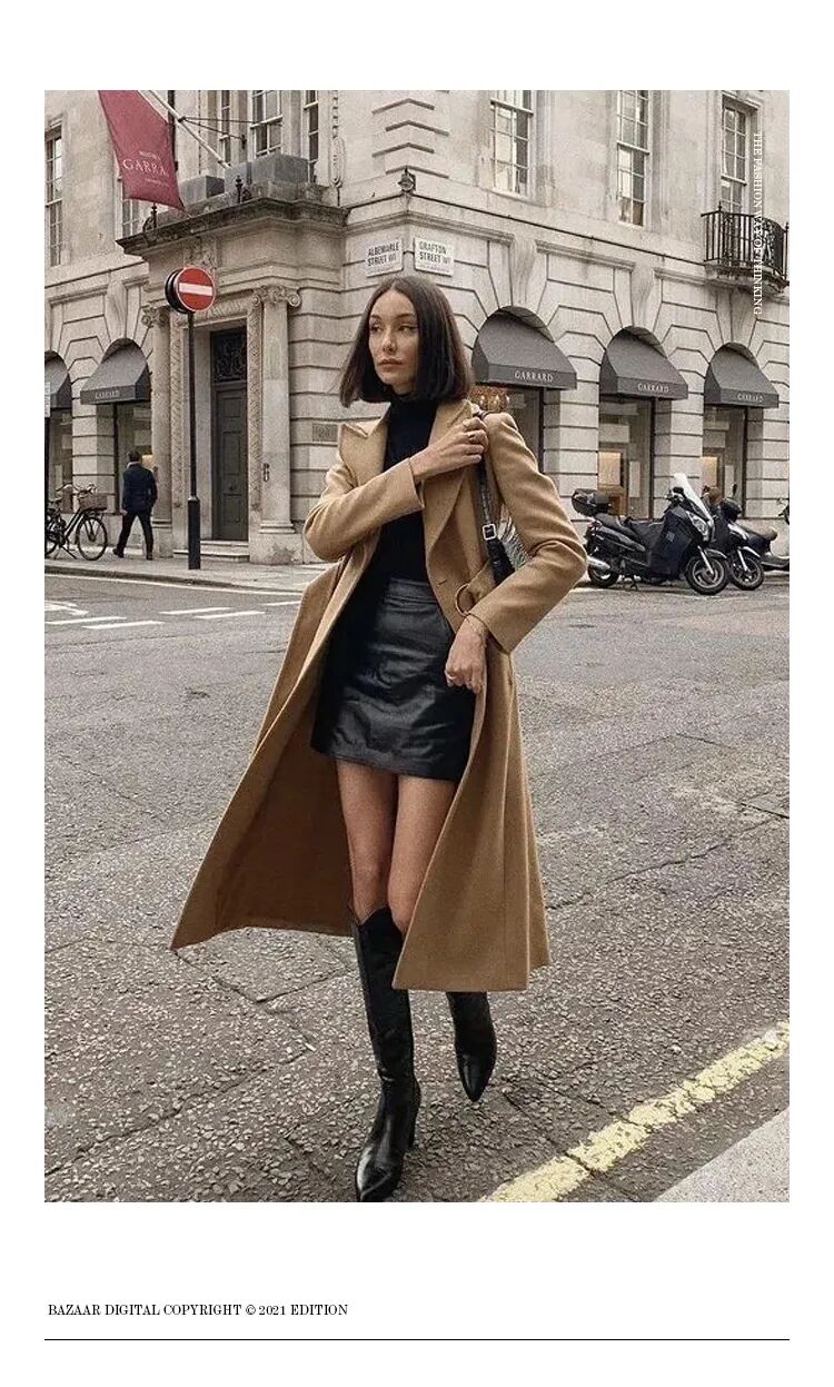 “大衣+裙子”的组合CP,相信是不少女生每年秋冬的穿搭标配。今年换成超长大衣,这一搭配可发挥的空间也远比我们想象的要多得多。在气温尚未完全转冷之前,内搭短款的半裙,时髦感也是杠杠的。短裙能提高腰线,长大衣能藏肉,看上去就很会穿。