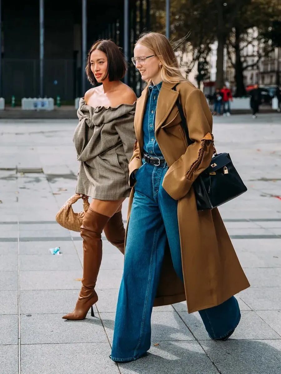 驾驭功力了得的时髦精们还可以把内搭换成全套的牛仔造型,牛仔的休闲风格和大衣的高级质感形成强烈碰撞,让整体的穿搭也变得更有层次。