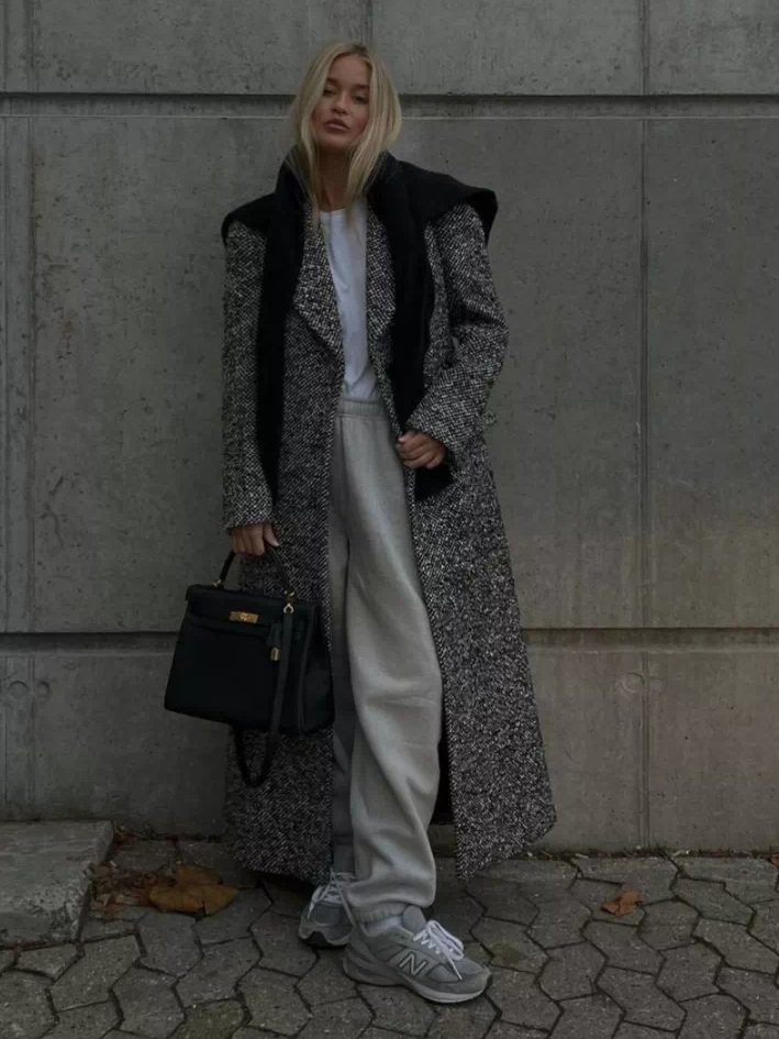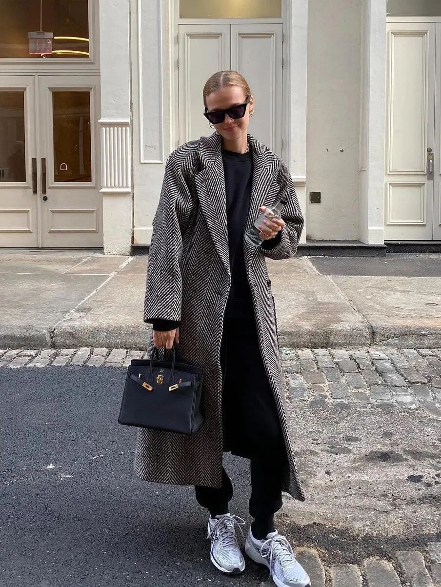 说完挑选的套路,那么在秋冬出镜率超高的超长大衣,又该如何搭配才更出彩呢?接着往下看吧。要说超长大衣这两年最时髦的“黄金搭档”,非运动套装莫属。在Athflow风的影响下,几乎所有时髦的博主、明星都这样穿过。