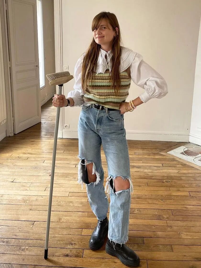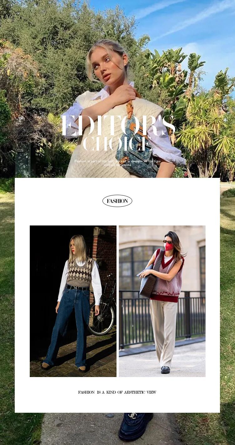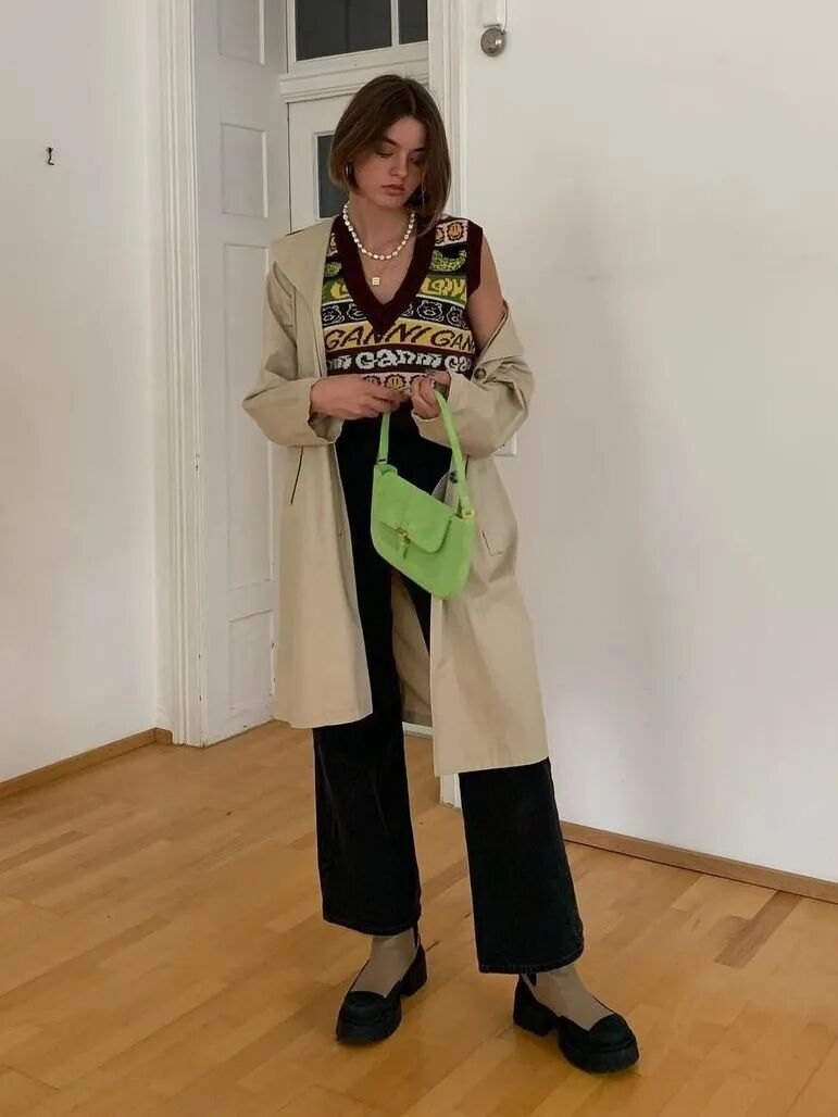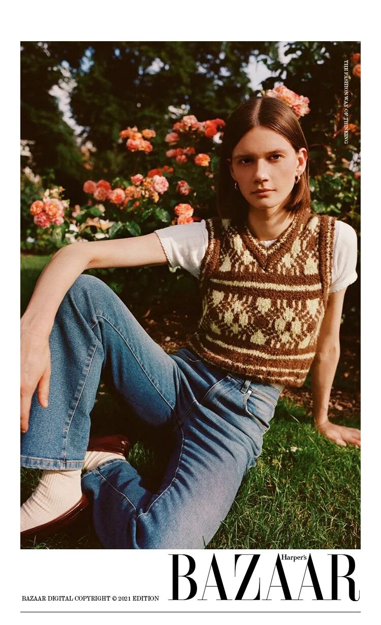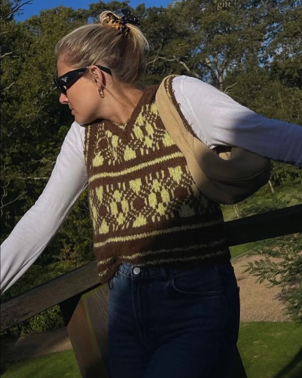 各种图案的针织马甲看起来花哨,其实配上我们的购买习惯是更容易出彩的时尚单品。因为很少购入五颜六色的下装,所以把搭配时的注意力转移到上装可以为穿搭创造更多可能。