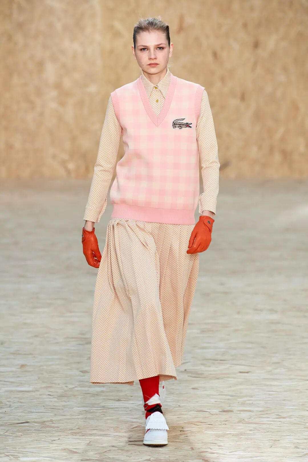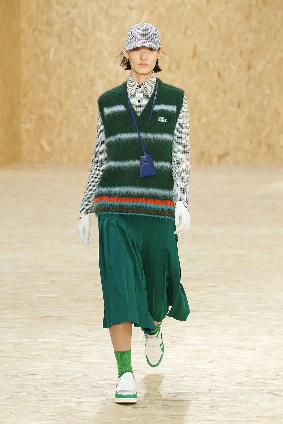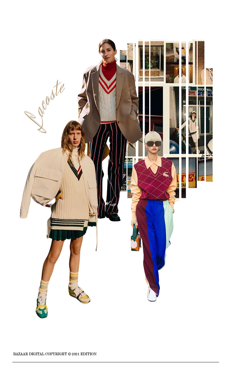 而另一种学院风的马甲设计则更加具有运动感,Lacoste 2020秋冬秀场上这两件oversized板型的针织马甲就很让人心动。