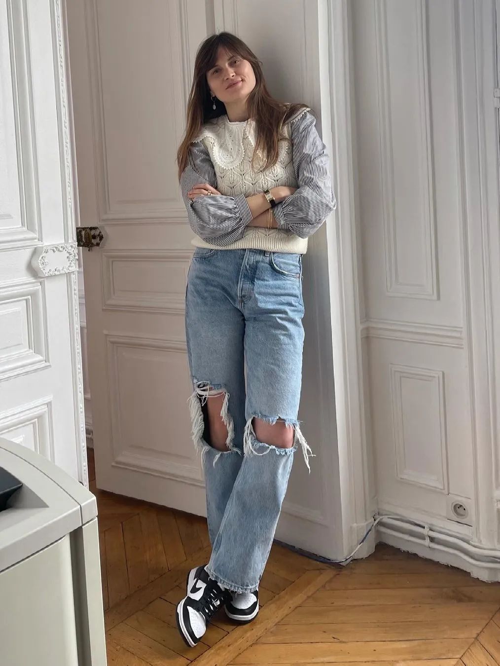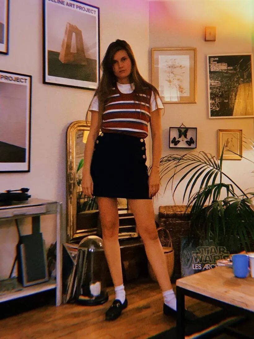 如果不想要太复古的款式,像Nabi和Rose一样选择平纹针织面料的基础款,搭配高领毛衣或是宽松白T都没有压力。
