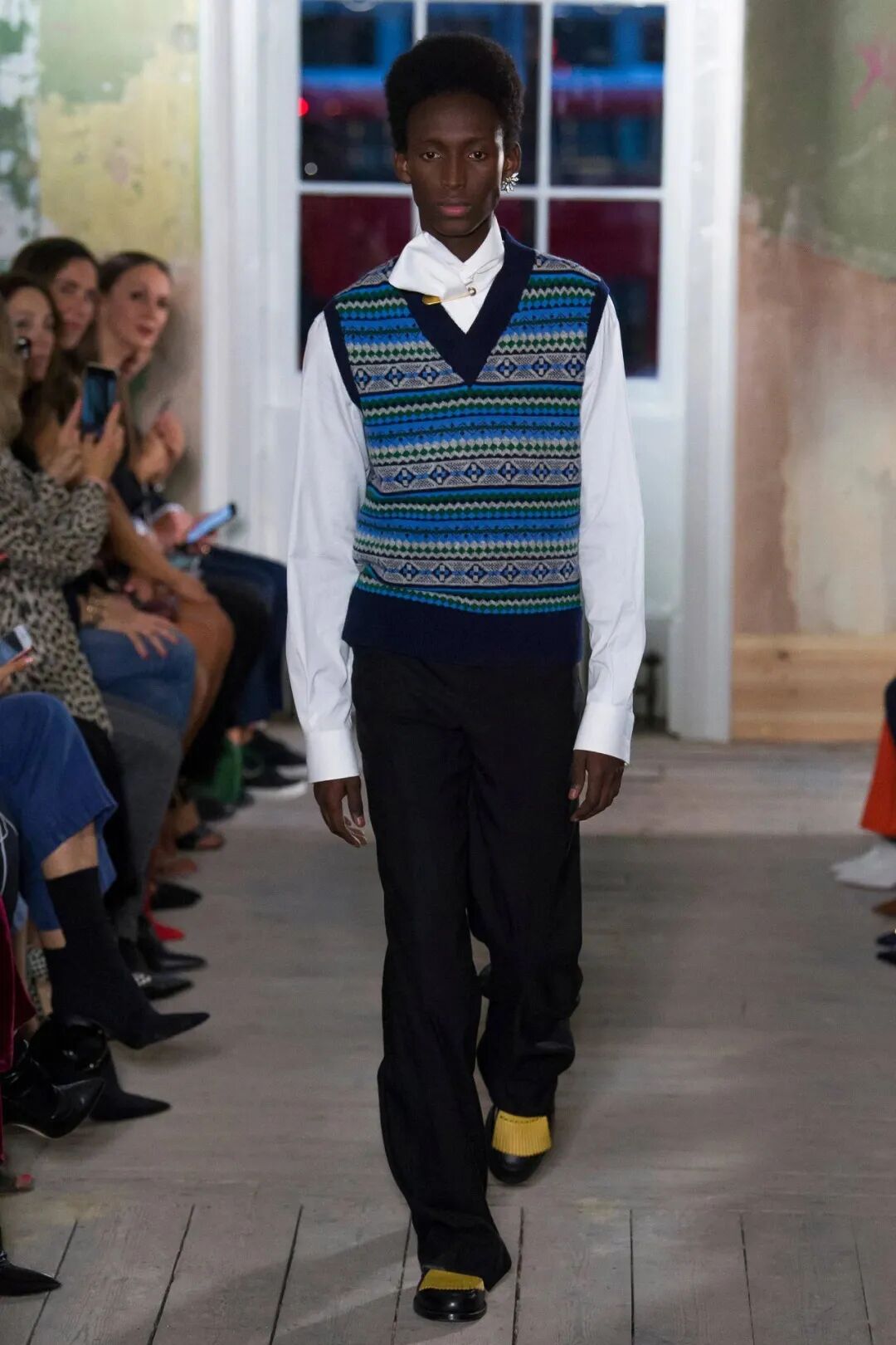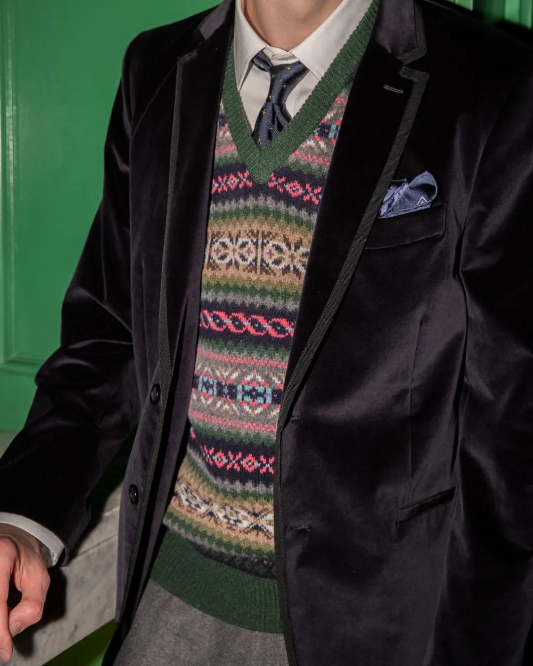 最传统的费尔岛花纹是出现在毛衣上,随着设计师的不断试验,费尔岛针织背心应运而生。比起毛衣,它更适合作为内搭点缀整身造型,而且从一定程度上避免了毛衣作为内搭臃肿的问题。