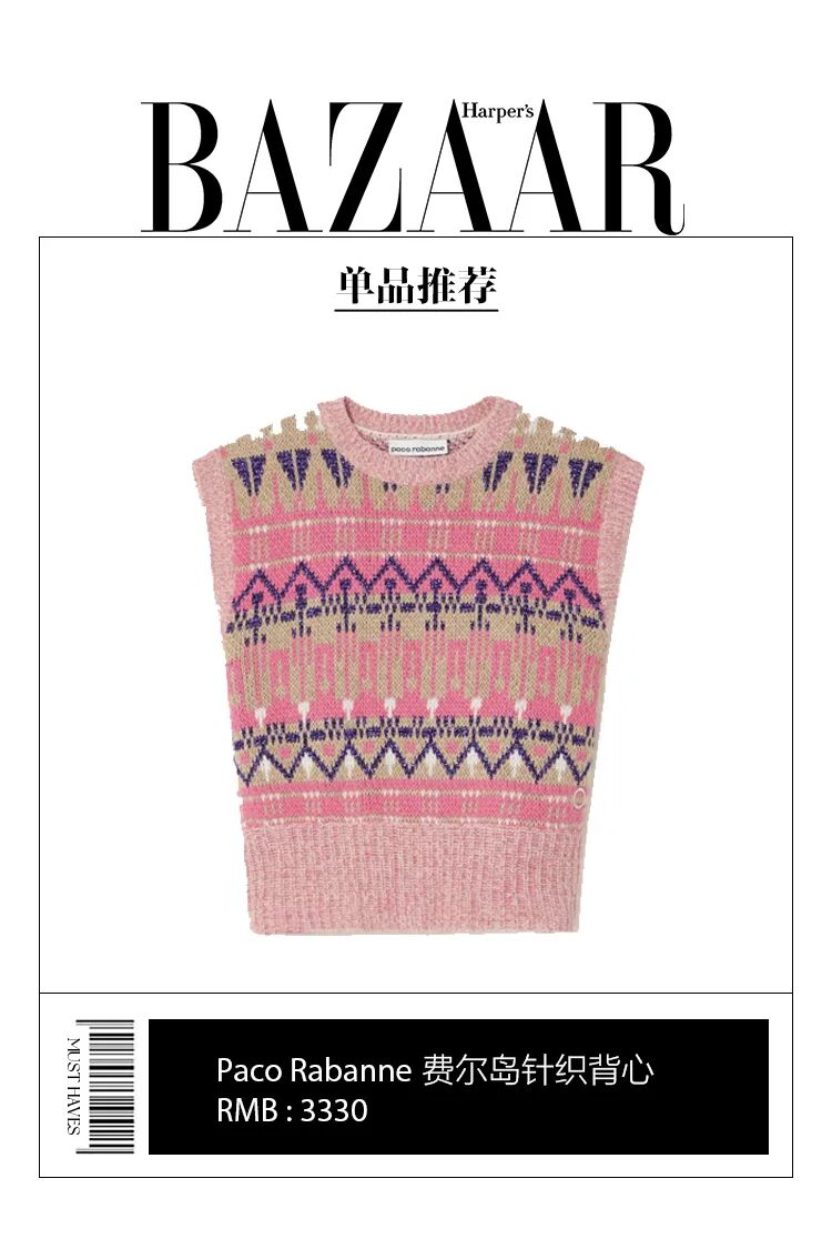 今年还有一种款式的针织马甲受到了时髦人士高度认可,各种款式的印花针织马甲,让秋冬保守的黑白灰中多了一点活力。