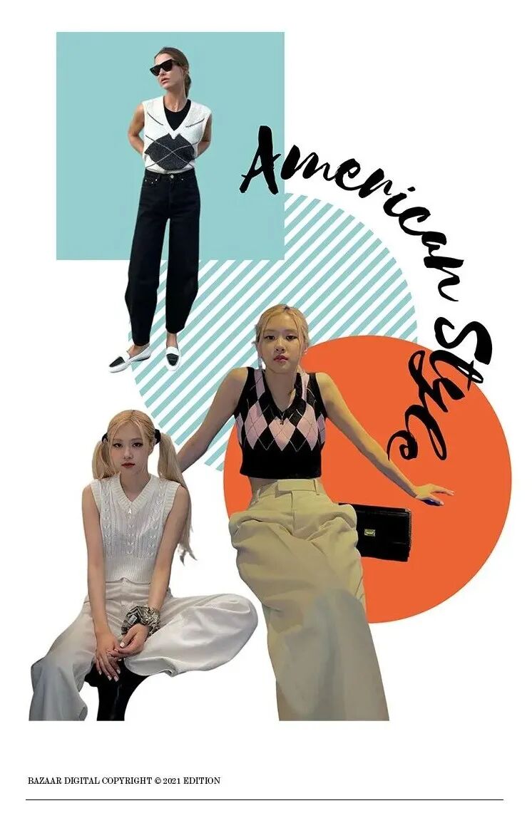 美式校园感的针织马甲一般都是短小贴身的款式,韩国女团式的单穿方法是女孩们从夏天就迫不及待get的时髦穿搭,而内搭衬衫则马上就有了美式小妞电影的味道。