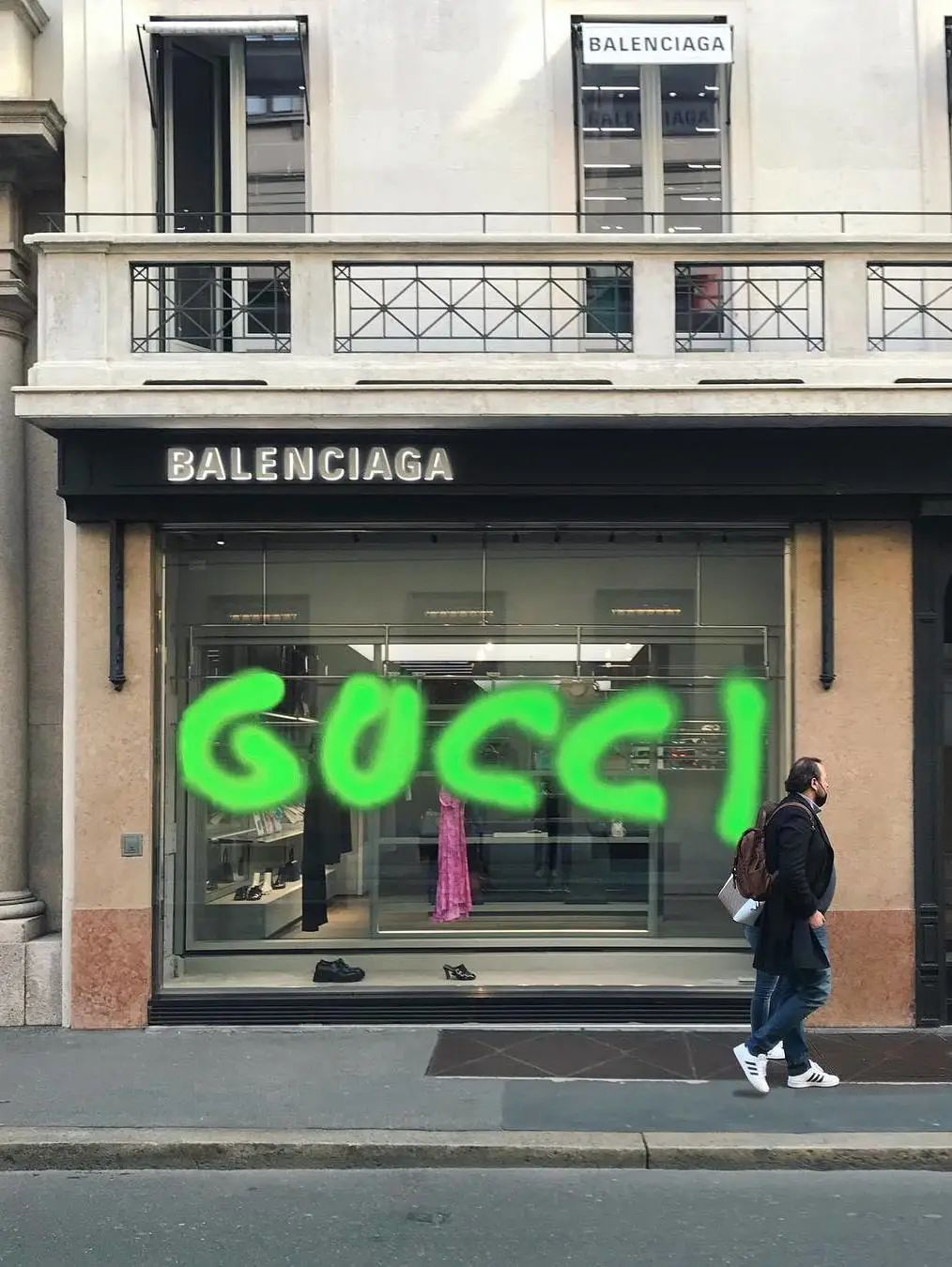 联名期间——在Balenciaga店铺涂鸦GUCCI