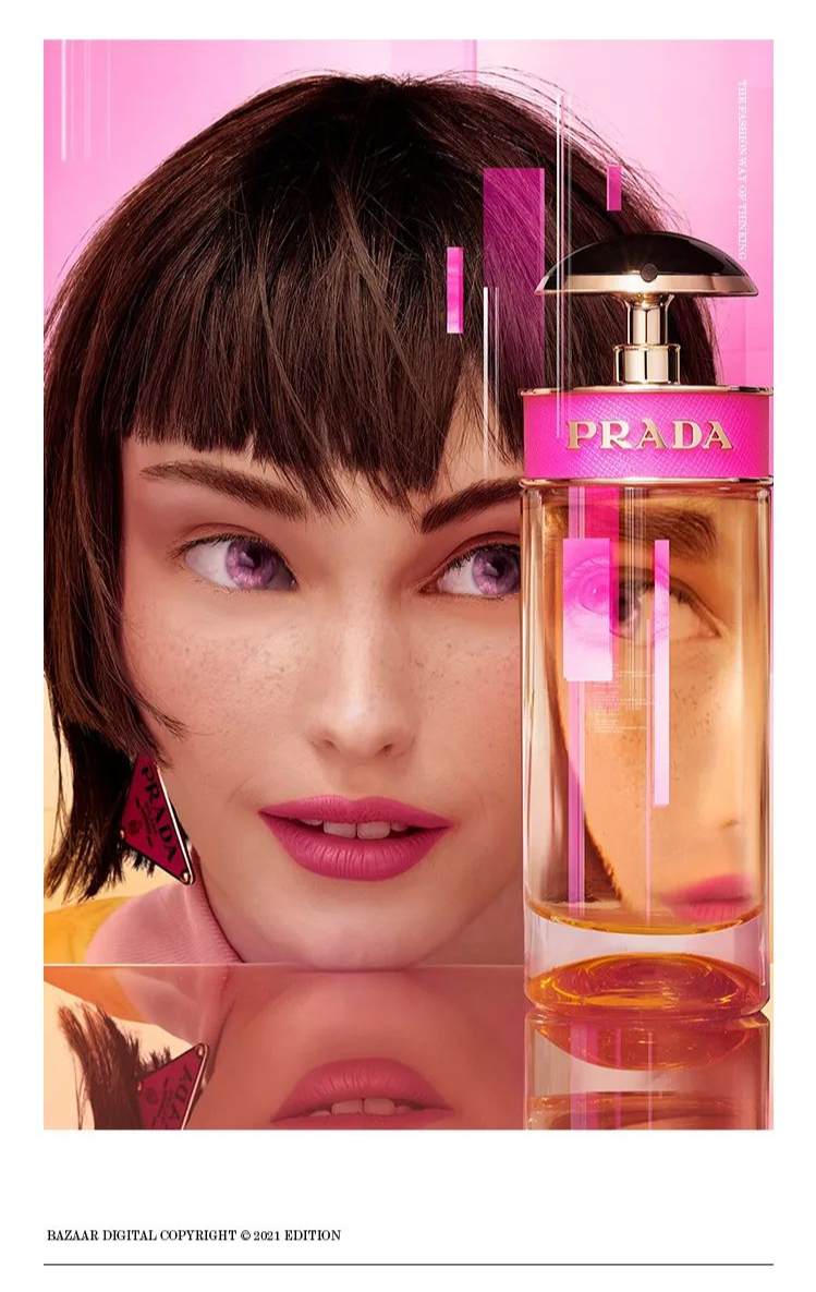 一向对于科技感情有独钟的Prada,必然没有错过这波热潮,为Candy香水广告推出了全新虚拟偶像代言人“Candy”。