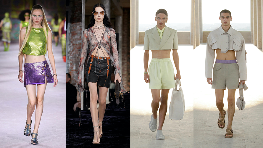 这个等级,布料稍微多了点,差不多是Crop Top的水平。Versace的金属色小上衣和无缝线低腰裙,像是给Paris Hilton在迈阿密夜场打碟量身定做;Acne Studios本季多用紧身胸衣搭配迷你裙,透视薄纱和皮革冲撞,北欧小清新一去不复返。男性选手也有份,Fendi的半截短外套用淡雅的春日色彩展现,这不就是所谓的又欲又纯?想看腰好、腹好、身材够辣的代言人打个样。