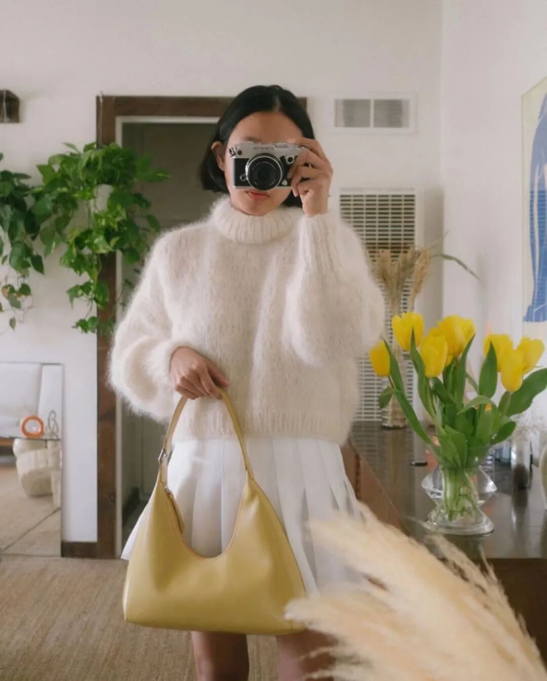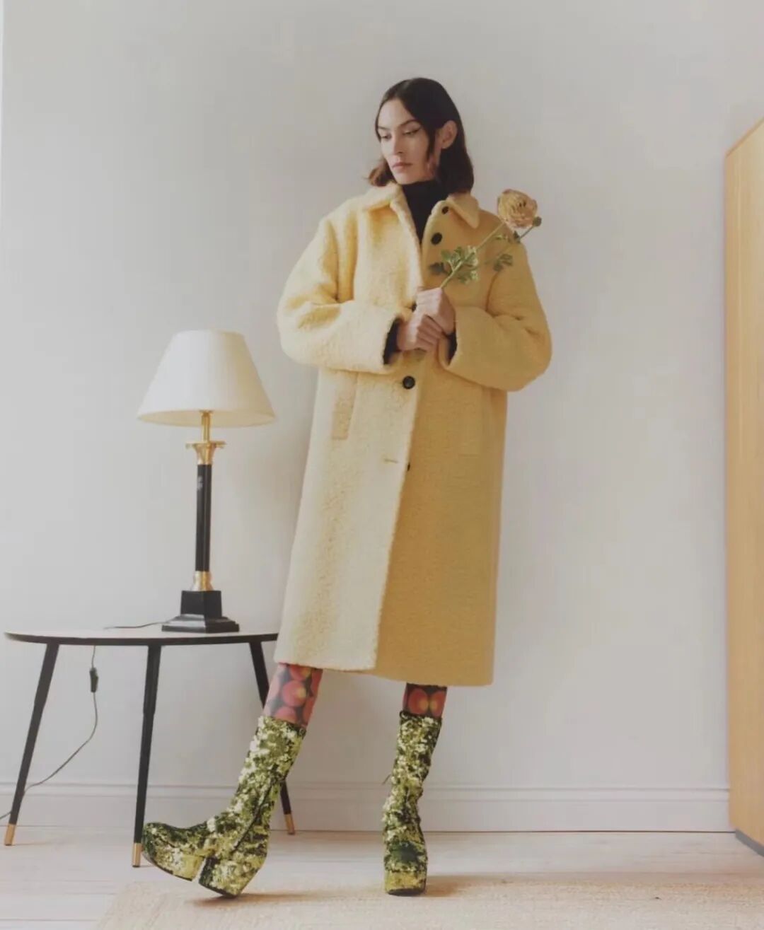 有人说:“世界上最治愈的东西,第一是美食,第二才是文字。”真想把世间万物都变为软软糯糯的甜点佳肴啊。愿望或许可以成真,但一切还要从一款风靡互联网的emoji合成小游戏《Emojimix by Tikolu》说起。凭借几个手指滑动的大动作,玩家便能够让两个互不相干的emoji表情合二为一。人物、美食、动物,乃至银河系中的星球都被囊括在内。网友们纷纷高呼玩儿上瘾了,而一系列有关食物的组合更是深入人心:地球奶酪、太阳蛋糕、羊驼咖啡、独角兽热狗……这大概便是万物皆可美食化的美妙之处。话说回来,如何在这个冬天让我们的衣橱也和美食来一场花样合体呢?身穿“甜点”的女孩,和身披糖衣的emoji星球一样,一定也有令人过目不忘的魔力吧。说到吃,Moschino称得上是专家级的存在。还记得2022度假系列中那些光怪陆离的食物造型吗?芝士化为钉珠亮片,面包变为蓬松披肩,奶油冰淇淋连衣裙将身体包裹得恰到好处,加之往季脱胎自洛可可风情而生的甜点造型包袋,分分钟将味蕾打开,食欲拉满。不过如此招摇浮夸的造型,或许只属于银幕中的好莱坞女主,想必很难穿出门吧。但谁说想拥有一套美食风穿搭,就一定要把自己变成夹在热狗里的香肠才行呢?要知道,“衣橱+美食=?”是一道开放题,解题思路在于今天你想吃什么。这个冬季的绝美流行色与穿搭Tips都藏在习以为常的食谱里。清晨的第一缕香气,印刻在街边熟悉的咖啡店里。此处有日复一日的温软早餐,也酝酿着一条辗转时尚圈多年的配色思路。我们口中常说的咖啡色系历经时间的考验依旧常搭常新,一旦抓住其纯度与明度间层次感分配的秘诀,便能美出新高度。Miu Miu 2022春夏系列便以“回归本能”的理念致敬了这一基础色系。像咖啡的苦涩与可颂的微甜交织,软糯的浅咖色针织开衫与杏色长裤以低对比度烘托出恰到好处的闲适感,是冬日室内穿搭的不二选择。如果想要氛围更加轻松一些,一袭杏色针织套装便能够胜任。此类低饱和度色调十分便于掌控,可在冷暖调间灵活变动。肤色偏黄的姐妹可以考虑选择偏冷灰色的款式来调和面部状态。卡其色毛呢大衣与风衣外套是独属于冬季的浪漫,以修长廓形抓住优雅命脉。乳白内搭的适当介入能够弱化卡其色与深咖色的生硬对比,以扩充色阶的方式展露丰盈的层次感。延续晨间早餐的配色风格,用一袭白衣搭配深褐色围巾,更是别有一番风情。对比分明的色彩让人联想到杯中奶泡与咖啡豆的醇香,分分钟打造出精致Effortless Chic。温柔的卡其色系中仿佛被注满了阳光的温度,以极高的包容度完美适配任何单品,剪裁流畅的短款西服外套也不例外。此时若是以深一度的咖啡色云朵包或亮面长裤加以点缀,则又能平添几分时髦酷感。正午是一天当中头脑最为昏沉的时刻,每当到了这个时候,就想来点儿辣的尝尝。高饱和度的橘褐色(Orange Ochre)像是12点炙热火辣的阳光,又像在盘中漂浮扩散的辛辣调料,为人带来一剂视觉上的醒脑胶囊。就连PANTONE发布的2021-2022春夏十大流行色中也不乏它的身影。这一“辛辣配色”在Dior 2022春夏成衣秀上以惊人比例呈现。源自20世纪60年代马克·博昂时期的流畅廓形与纯粹色块从简约设计语言中跳脱而出,以大面积的单一色调斩获令人过目不忘的魔力。在被沉稳深色系笼罩得透不过气的冬季,试问谁不想拥有一件夺目抢眼的橘褐色大衣呢?格纹元素与橘褐色堪称绝配,在弱化视觉冲击力的同时提升了整体造型的层次感与记忆度。这个时候若是再点缀一顶黑色礼帽,脚踩玛丽珍鞋,一定能够将复古气质妥妥拿捏住。无独有偶,红色系格纹也是冬季复古风穿搭的绝佳选项,仅作为基础单品的局部点缀便能够轻松打造出疏密有致的独特英伦气质。说到这里,你衣柜中的毛绒外套还停留在清一色的驼色系吗?是时候给它们点儿颜色看看了。PANTONE不久前发布的流行色金盏花橘(Marigold)就是个不错的选择,暖色调皮草能够带来视觉和触觉上的双重保暖,何乐而不为呢?如果说对下午茶的执着是一种生活方式的体现,那么对甜品美学的热衷便关乎一种审美风格的延续。醇香精致的下午茶,乍看诱人,更何况穿在身上呢。“A diaphanous pink adds a tender touch.(透明的粉红色给人一种温柔的感觉。)”这是PANTONE色彩机构对年度流行色“芭蕾舞步粉(Pirouette)”的形容,光是名字就已经美出天际了。无论宽松舒适的卫衣,抑或蓬松柔软的棉服,都能够在这份清澈粉红糖衣的加持下变得温柔优雅。粉与白的结合像是一个既定穿搭密码,以低饱和度高明度的特征达成提亮肤色的效果。风靡了几季的香芋紫也不例外,这一骨子里带有温柔基因的色彩像是冬日里的一个拥抱,如今我们可以亲切地称它为紫玫瑰(Purple Rose)。厌倦了千篇一律的all black造型,不如尝试一下芋泥啵啵奶茶配色吧。不同于高纯度紫罗兰色的生硬,笼罩着灰白滤镜的“紫玫瑰”对亚洲人的黄调皮肤更加友好,这一甜度爆棚的0卡选项你值得拥有。不得不说,玩味十足的灰调绝绝紫确实拥有无可比拟的适配度。温柔女孩当腻了,来套潇洒的Miu Miu滑雪服穿也很加分。