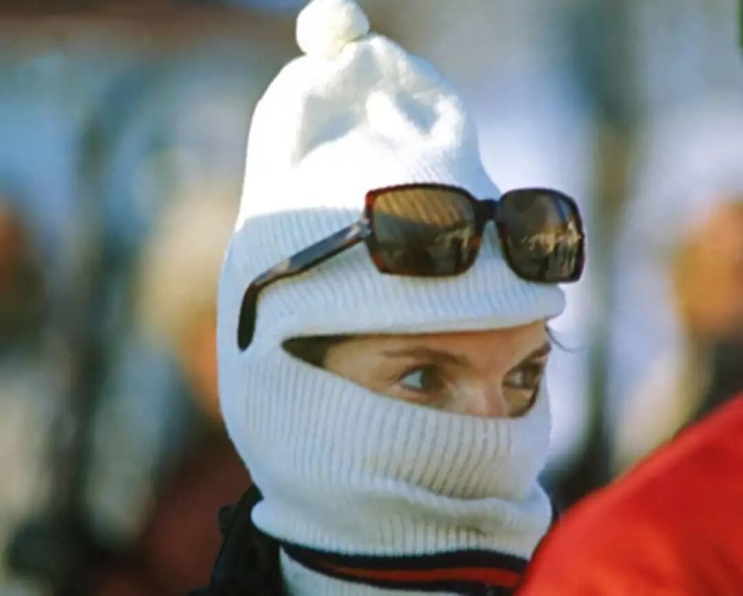 巴拉克拉法帽起源于巴拉克拉瓦(Balaclava)。在Crimean War(克里米亚战争)期间,由于气候寒冷,当地居民都戴着这种帽子以保护脸和脖子不受到寒冷和强风的侵袭。后来巴拉克拉法帽被滑雪以及户外运动爱好者发现,运用到了户外运动中来提高保暖系数。Jackie Kennedy with Ski Mask