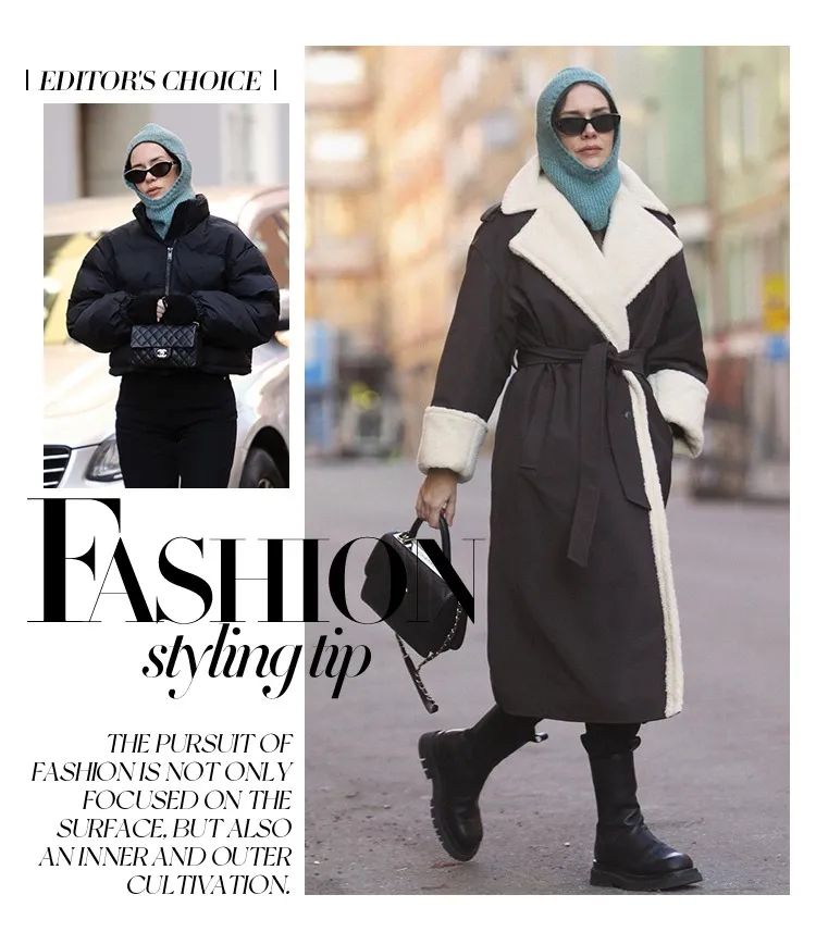 而一向爱自然爱户外的Jacquemus在2021秋冬系列中,也把巴拉克拉法帽和各种具有户外风格的单品融合,打造了一场色彩斑斓的户外世界。这个秋冬,巴拉克拉法帽早已横扫了整个秀场,而秀场之外,这件看似不实用的单品也成为了博主们日常出街的最爱。巴拉克拉法帽在日常中其实也并没有想象中的那么难搭配,一向走实用通勤风格的博主Caroline Blomst就把巴拉克拉法帽用羽绒服搭配出了这个冬天保暖而时髦的穿搭。巴拉克拉法帽的风格对于外套的搭配来说几乎没有任何限制,今年流行的正装大衣和巴拉克拉法帽搭配有一种意外的和谐感,帽子的复古可爱刚好平衡了大衣的正式感。搭配大衣的巴拉克拉法帽可以选择材质比较软糯的羊毛,和大衣的质感在面料上承接呼应。