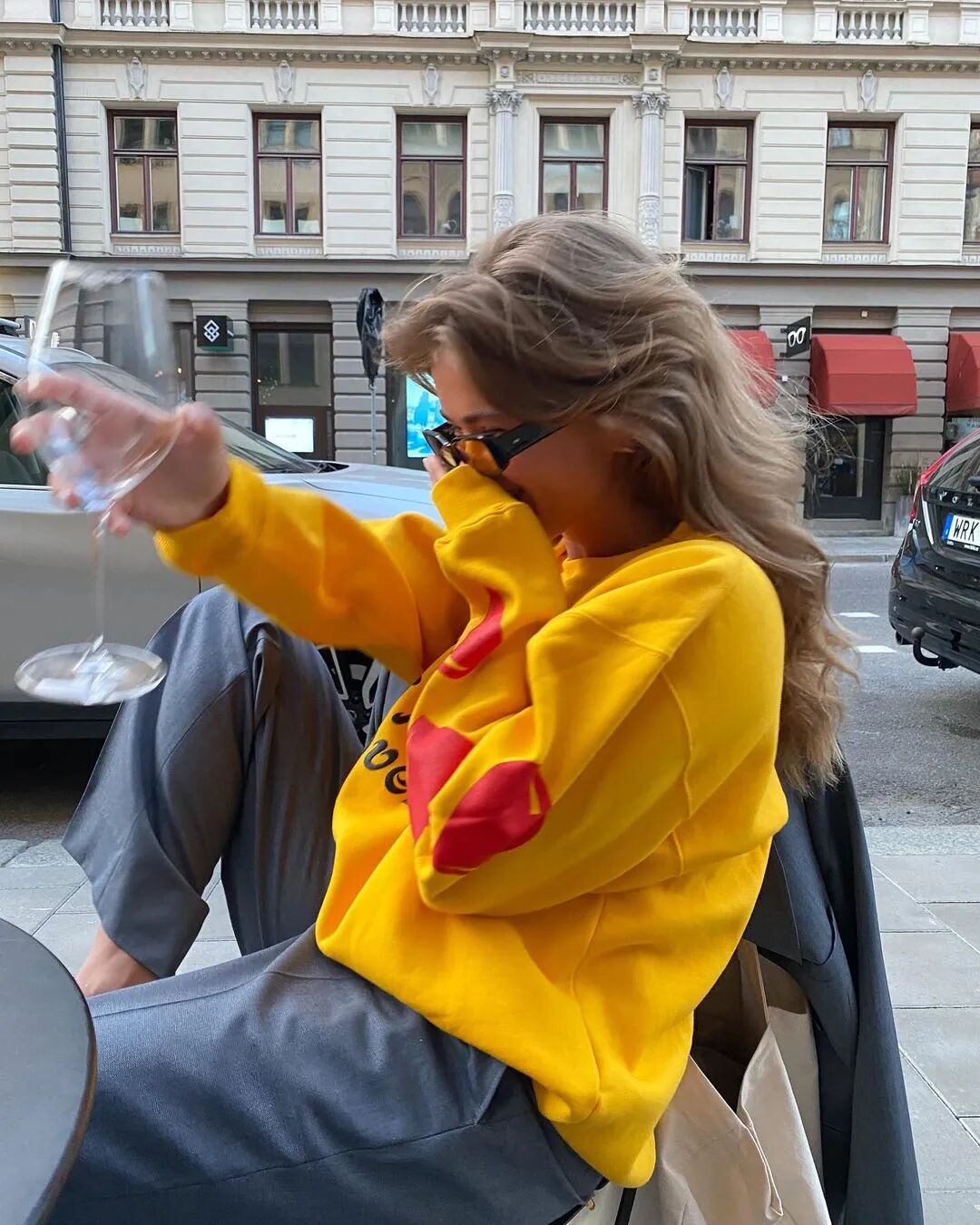 这种美式复古风的卫衣更有运动休闲感,可以搭配很多正式的单品来穿,增加造型的细节感和活力。混搭剪裁利落大衣耐看得很,ins上有很多博主的穿搭,每套都可以照搬上身。南方地区的女生,如果天气尚未变得太冷,还可以用裙子来搭配,变换成另一种风格,照样可以打造上世纪90年代的复古运动气质。图案印花卫衣应该也是很多人衣柜里的常客,大面积的图案让简单的纯色卫衣也不再单调。宋祖儿在剧里穿的这件印花卫衣,图案配色还挺耐看的,女生穿起来立马变得又甜又可爱。另外一件彩色图案印花的卫衣也很特别,还有撞色的小细节,透着些许俏皮活泼感。感觉她还挺喜欢这种卫衣款式的,前不久,还穿着一件图案印花的卫衣和朋友到迪士尼玩耍,可可爱爱。图案印花卫衣在视觉上更有冲击力,而且搭配的图案不同,可以俏皮可爱,也能随性洒脱,喜欢什么风格全看你的个人爱好。男生也可以选一些图案简单的设计,阳光帅气的学长风格信手拈来。平时出门随意一套,看上去就很舒服。女生自己买的时候,也可以顺手给男朋友买上,情侣装可以穿起来。如果是走甜酷路线的女生,还可以选择更有潮流感的印花图案,不管单穿还是叠穿,看着一点都不普通,亮点都藏在图案里了。卫衣的款式当然还远不只这些,这件单品不管什么时候,始终都是不可取代的万能搭配必备。明天就跟着宋祖儿入手这些时髦卫衣,解锁更多花式的秋冬穿搭吧。