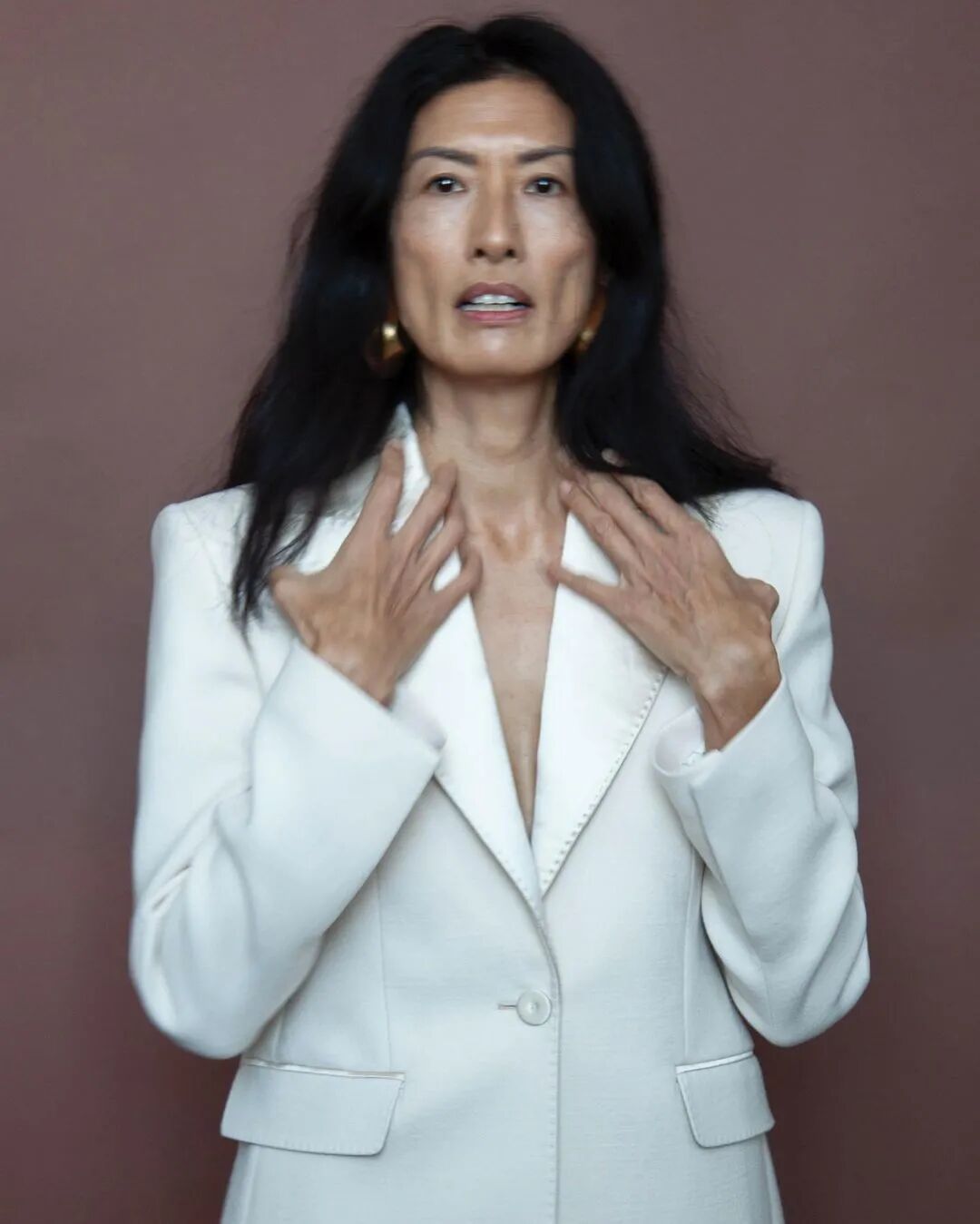 Suzi在亚洲人的审美中,绝对算不上美人,50岁的女人全盘接受自己最自然状态的也是为数不多的存在。比起白皙的皮肤和饱满的脸颊,Suzi更看重肌肉和线条,这些不会轻易衰败的生命力。因为皱纹、雀斑和凹陷的脸颊只是自然规律,比起对抗地吸引力,她心中有更重要的事。生活照中的Suzi大多只是简单地刷一下睫毛,再涂些口红。亚洲人的黄皮黑发红唇也可以不失美艳,眼角的皱纹通过笑意都在表述着“这皱纹是我好不容易长出来的,不显示出来太可惜了”。她想反对经典亚洲美女的常态化:“我不像许多亚洲人那样皮肤很白,脸上有斑点,所以我想打破这个‘规则’。T台上的她不苟言笑,但在生活中她却永远把最爽朗的笑容挂在脸上,那一刻忽然明白了那句话:"Si je me trouve belle, je pense que les autres le trouveront aussi."Huber去世后,在采访中Suzi依然可以满脸幸福地说出:“他是我一生挚爱。”简单的语句却让人感受到了这份经历了时间沉淀,跨越时空的爱情。时尚圈永远不缺年轻的肉体,但却难得看到这样经历过岁月沉淀之后有趣的灵魂。一点酷、一点可爱和一点智慧的豁达,这样的Suzi是复杂的融合体。在法语的表达中,当你不知道如何去形容这种神秘且解释不清的美妙时,他们会说“je ne sais quoi”。这句在唇舌之间暧昧纠缠的法语,读不懂但却别有滋味。就像是Suzi,她身上有美式的轻松、巴黎人的优雅,当然还有香港姑娘的坚韧,因为复杂所以迷人。“我希望能以自己的方式成为灵感。生活可以在任何年龄和任何时间改变方向,你可以克服最困难的时期。当然这需要勇气、信念、意图和很多幽默,最重要的是永远不要忘记呼吸和享受,因为生命短暂。”©版权声明:时尚芭莎网编辑时尚芭莎,本文系时尚芭莎网独家原创,如需转载请注明出处。