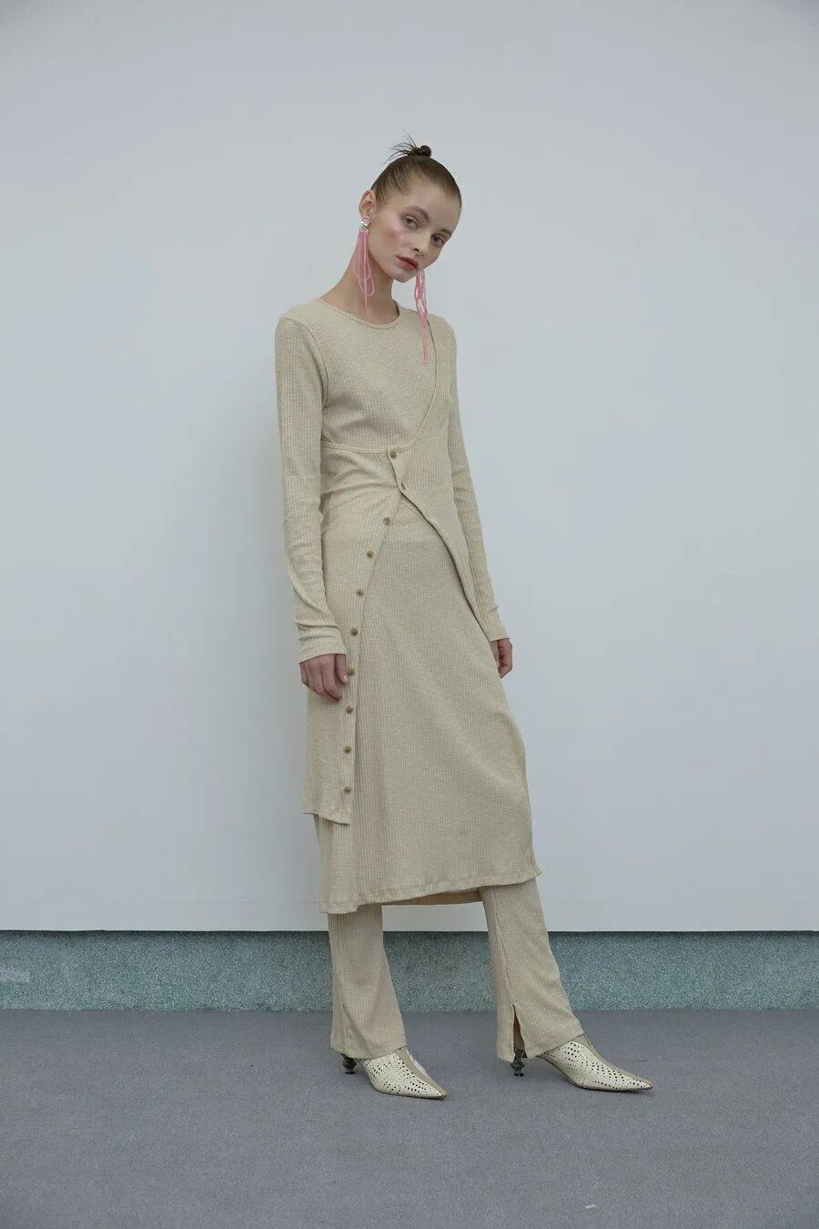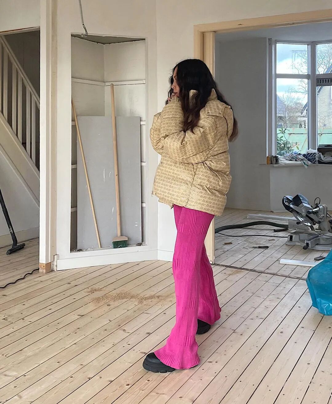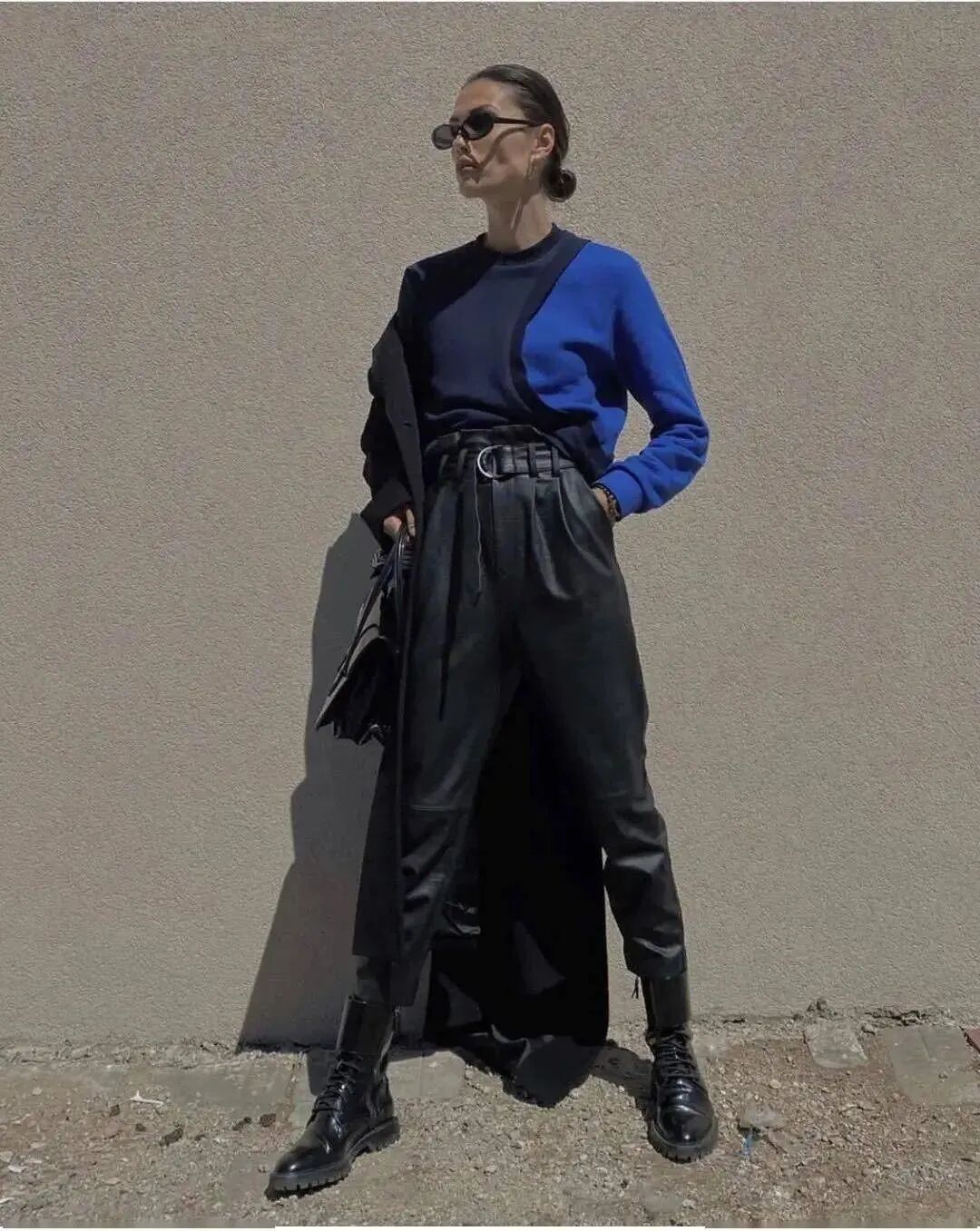 拖地裤的优点显而易见,高妹可以选择高腰拖地裤+平底鞋的搭配。小个子女生或者想要优化身材比例的姐妹,可以内搭高跟鞋,瞬间穿出大长腿既视感。