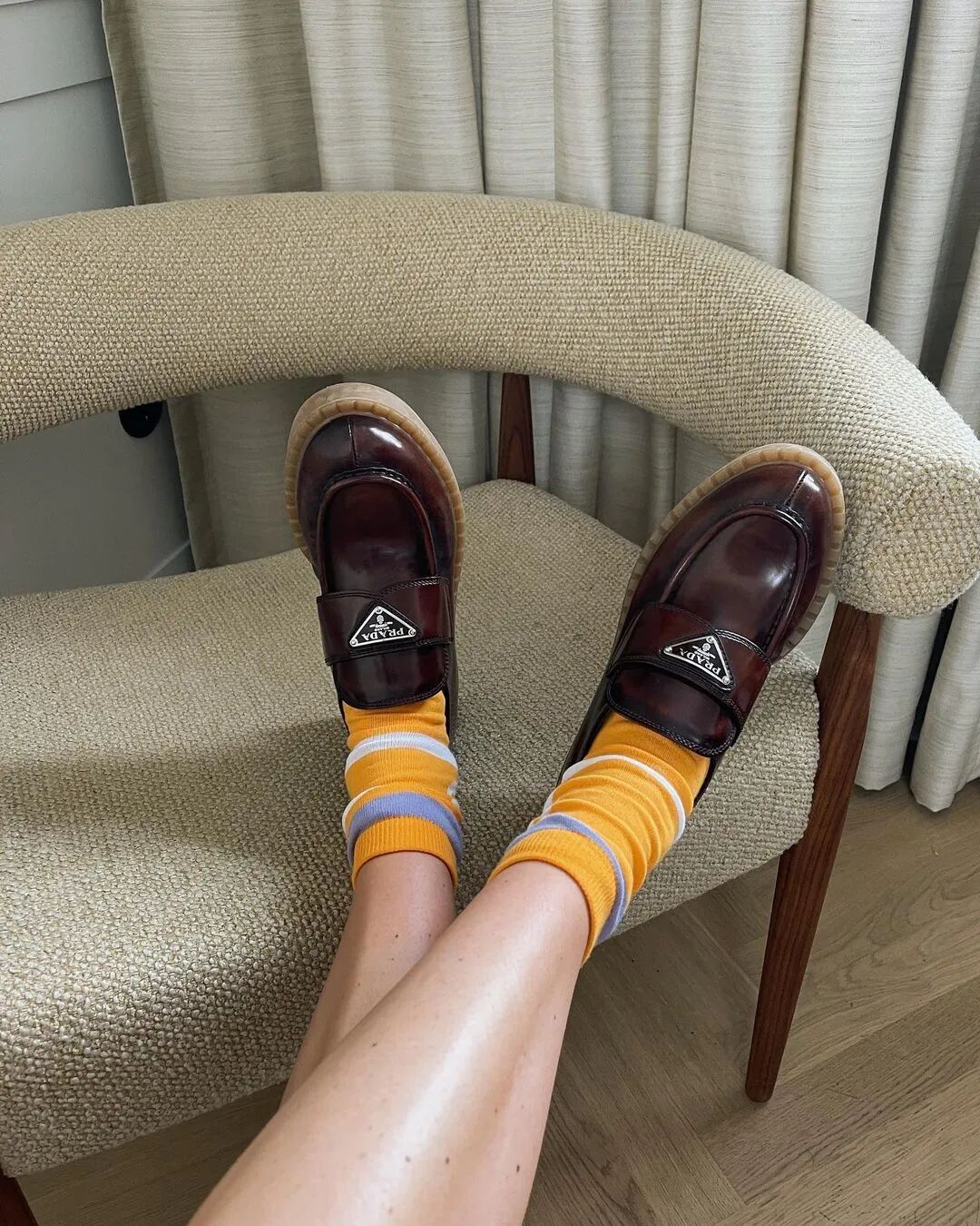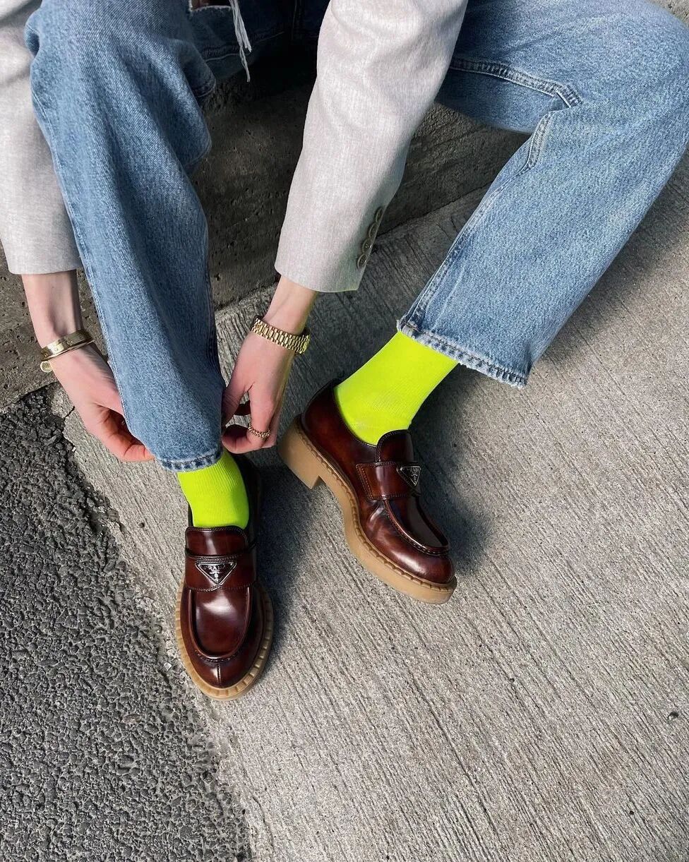 袜子是被时尚圈低估的武器,别看它在整个造型中的占比不大,却可以给整体穿搭增色不少。INS上有一位超火的穿搭博主@thankyou_ok,就是靠会穿袜子出圈。可见只要会搭配,凭细节也能“博出位”。根据@thankyou_ok的日常穿搭可以发现,最不费力的穿法就是同色系搭配。参考其他时尚博主的穿搭,这种穿法完全成立。让袜子跟今天的造型保持色系一致,是不会出错的选择。进阶一点的玩法就是色彩呼应,这种穿法比较适合彩色的袜子。