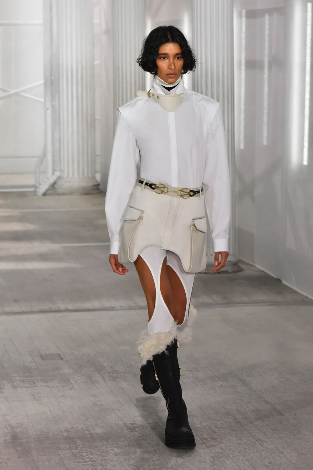 时值气温较低的季节,倘若在大衣或羽绒服内搭一袭修身套装,可以说是掌握了初春显瘦秘籍。在勾勒完美身材比例的同时利用外套遮蔽上臂与大腿的赘肉。时尚博主Rebecca Jackson便深谙这一穿搭原理,时常选择在长款外套内搭配邻近色打底裤与修身背心,标志性的Athflow风将时尚与舒适度拿捏得毫不费力。Mugler 2021秋冬成衣系列则通过一系列充满未来感的荧光色与半透明光泽感面料诠释其对于身形塑造的理解。尖头鞋能够有效延伸腿部线条,是外穿紧身裤的绝佳搭档。除跳脱别致的配色外,多元化图案同样能够为打底裤注入灵魂。Lanvin将品牌标志性的“JL”花押字平铺于贴身打底裤上,相比于醒目的logo,这种装饰手法显得更加内敛,与姜黄色大衣一同诠释出慵懒法式风情。或许你对Marine Serre不太了解,但你一定见过这个火遍了大街小巷的新月图案。倘若想要寻找比较好驾驭又不显单调的紧身裤,这一融合了运动风与未来主义的印花界黑马一定是个不错的选择。同为饰有表面装饰的贴身单品,Richard Quinn则主要走甜度爆表的清新路线。闪亮的银色钻石以螺旋状点缀在低饱和度的连裤袜上,增添了几分疏密有致的肌理感,且不会过分扎眼,很适合配合碎花裙与浅色系针织衫穿着。执迷于朋克风的西太后也热衷在连裤袜上做文章。带有几分做旧感的层叠荷叶边让人联想到哥特式的怪诞。专属于Vivienne Westwood 女孩的打底裤仅需少量图案点缀,便可将风格塑造饱满。展示美腿的方式千千万,并不是非打底裤不可。相比于花里胡哨的各式连裤袜,一袭黑色高腰裤或许来得更实在些,接受度也相对较高。但如果你觉得它过于简单平庸,那就大错特错了。看上去设计感不强的它们仅需在板型上稍做调整,就能够让你气场全开。Saint Laurent便用事实证明了穿上高腰裤瞬间腿长两米的神话。不过雷还是需要避的。较为贴身的all black造型能够将纯黑高腰裤与身体自然融合,虽然穿上立马可以get一套六亲不认的强大气场,但这种搭配方式却对腰臀部位的身形具有相当大的考验,一不留神就有暴露身材缺陷的风险。相对而言,以宽松黑色外套搭配纯黑高腰裤就保险得多了。这种不挑人的穿搭公式能够隐藏偷偷长在腰部的肉肉,作为日常穿搭方案很难出错。上部修身底部微喇的裤型能够有效修饰大腿,并延伸小腿线条。倘若搭配一件视觉上具有膨胀效果的亮色oversize外套,则可以与黑色裤装形成对比,将腿部衬托得更加纤细。喇叭裤能够常年屹立于时尚单品C位不倒的一大原因,便是其对于不理想的腿部线条十分友好。宽大的裤脚可以规避小腿肌肉过于扎实带来的粗壮感,且能将大腿衬托得更加纤细。倘若在具备“高腰”与“裤长拖地”两个基本要素时搭配尖头鞋穿着,腿长两米绝对不是梦。另一种拉长腿部的方式,是将宽大的裤腿微微卷起,配合黑色高跟短靴穿着。这种搭配方式可以将脚踝修饰得更加纤细,在鞋跟的衬托下形成腿部拉长效果。高腰铅笔裤也是不错的选择,这种裤型看似对粗壮的小腿不太友好,但倘若甄选好短靴的靴筒高度,同样能够收获惊人的瘦腿效果。当靴筒刚好覆盖到小腿中部时,能够相对削减粗壮肌肉带来的突兀感,起到修饰腿形的作用。想在寒冷季节穿裙子,不露腿一样能够迷倒路人。试图借光腿神器修饰腿形无果的你,不如将目光转向四季皆宜的设计感长裙。于外羽绒服、大衣皆可搭配,于内又能很好地掩盖腿形的不足之处。最重要的是,它是怕冷星人的福星。别说光腿神器了,内搭十条秋裤也没人会注意到。在长裙的选择上,不一定要追求色彩上的过分夺目,暗藏在设计细节中的小玄机才是让你变得与众不同的关键。罕见的提花或光泽感面料、不规则的廓形,都是冬季长裙穿搭的加分项。从廓形到面料,独特的设计细节能够将目光焦点锁定到裙面处。此时外搭一件较为常规的单品,便可为整体造型增添层次感,随随便便就能收获一套氛围感大片。如果你钟情于混搭风,不妨参考Louis Vuitton的搭配思路,以五五分的比例穿着裙装与长靴,再配上一件oversize毛线衣。既能在寒冷冬季驾驭心仪的小裙子,又不至于美丽冻人。世界上有一种浪漫主义是独属于Simone Rocha的,长靴与长裙在膝盖处交叠,纱制面料的繁复堆砌构造出唯美的英伦风度。从摩登现代到浪漫派,半裙配长靴的穿搭方式适用于各种风格。或许蓬蓬裙与高筒马丁靴对职场女性并不友好,但如若将裙装的比例缩至最小,替代为饰有多重印花的长靴,就利落得多了。Fendi一改长靴以往的成熟化路线,将艺术家Antonio López的作品平铺于靴筒上,减龄效果拉满。Givenchy则选择在靴筒顶部装饰细腻荷叶边,为朋克风注入了几分俏皮气质。穿过的人都知道,高筒靴在修饰腿部线条上称得上是神仙级存在。别再纠结哪家光腿神器最自然了,穿上秒变筷子腿的高筒靴不香吗?相比于长筒靴,袜子靴的贴身效果更胜一筹。Bottega Veneta沿袭了以往的亮丽色彩,以几何图案营造出韵律感,在削弱厚底突兀效果的同时起到了一定的拉长腿部作用。说到底,正在翻小红书的姐妹们别再纠结于光腿神器哪家强了,天气这么冷,大家都心知肚明,何苦掩耳盗铃呢?打底裤存在的意义并非让人看不出它的存在,而是要让穿上它的人因它的存在而发光。下一次有人向你安利光腿神器的时候,不如来个反向安利吧!©版权声明:时尚芭莎网编辑时尚芭莎,本文系时