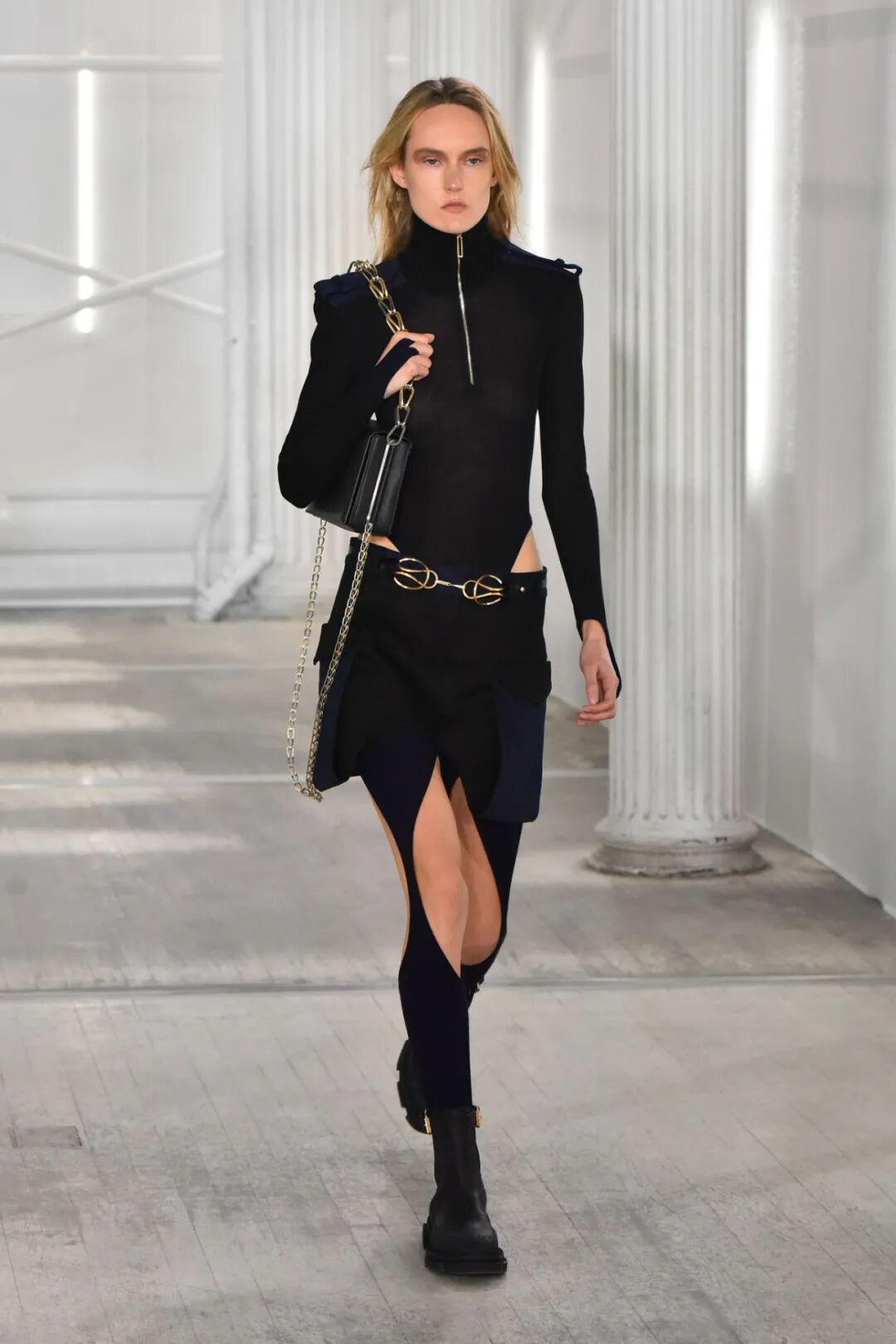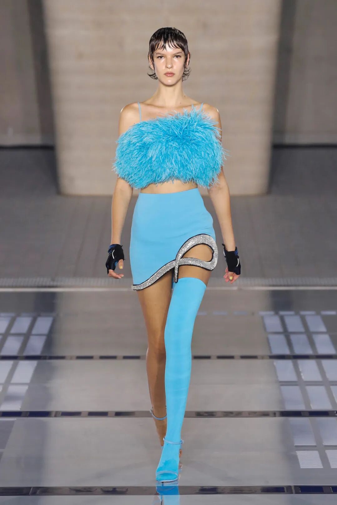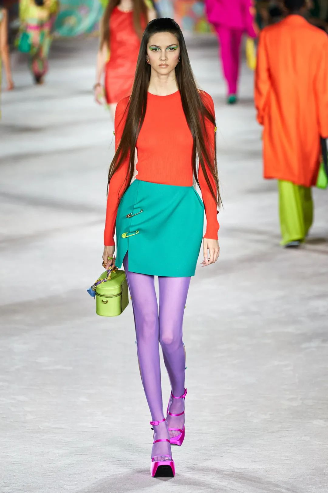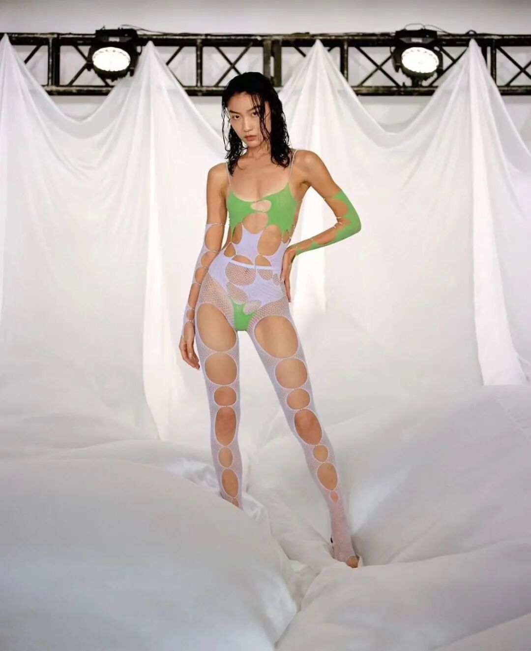 谁说打底裤只有无限贴近于肤色才时髦?既然找不到最自然的那一条,换个颜色不香吗?纵观时装秀场,从明亮色彩到肌理感,再到多元化的图案,打底裤从来都不曾局限于某一种颜色。在廓形上并无太多发挥空间的它们往往正是因配色的独特性才得以被人们记住。其实早在15世纪的欧洲,打底裤就已经以丝袜的形式大行其道了,只不过那时还局限于男士主场。中世纪的男士执迷于利用各色丝袜凸显腿部肌肉线条,从而彰显自身的男子气概与力量感。由于丝袜的编织工作往往会交由神职人员来完成,因此它也被视为一种身份与地位的象征,从拿破仑到路易十四都对各色丝袜着迷。而如今的设计就更加丰富了,从Dion Lee近几季推出的单品中便可见一斑。富有张力的大面积镂空设计为这一常规单品增添了更多记忆点,与中国设计师品牌RUI的不规则破洞设计颇有几分异曲同工之妙。设计师们从不会吝啬于为连裤袜赋予明亮色彩。高饱和度的亮色能够将人们的视线很快吸引到腿部。相比于低饱和度的光腿神器,能够更好地突显腿部线条,且不至于产生膨胀感。Saint Laurent