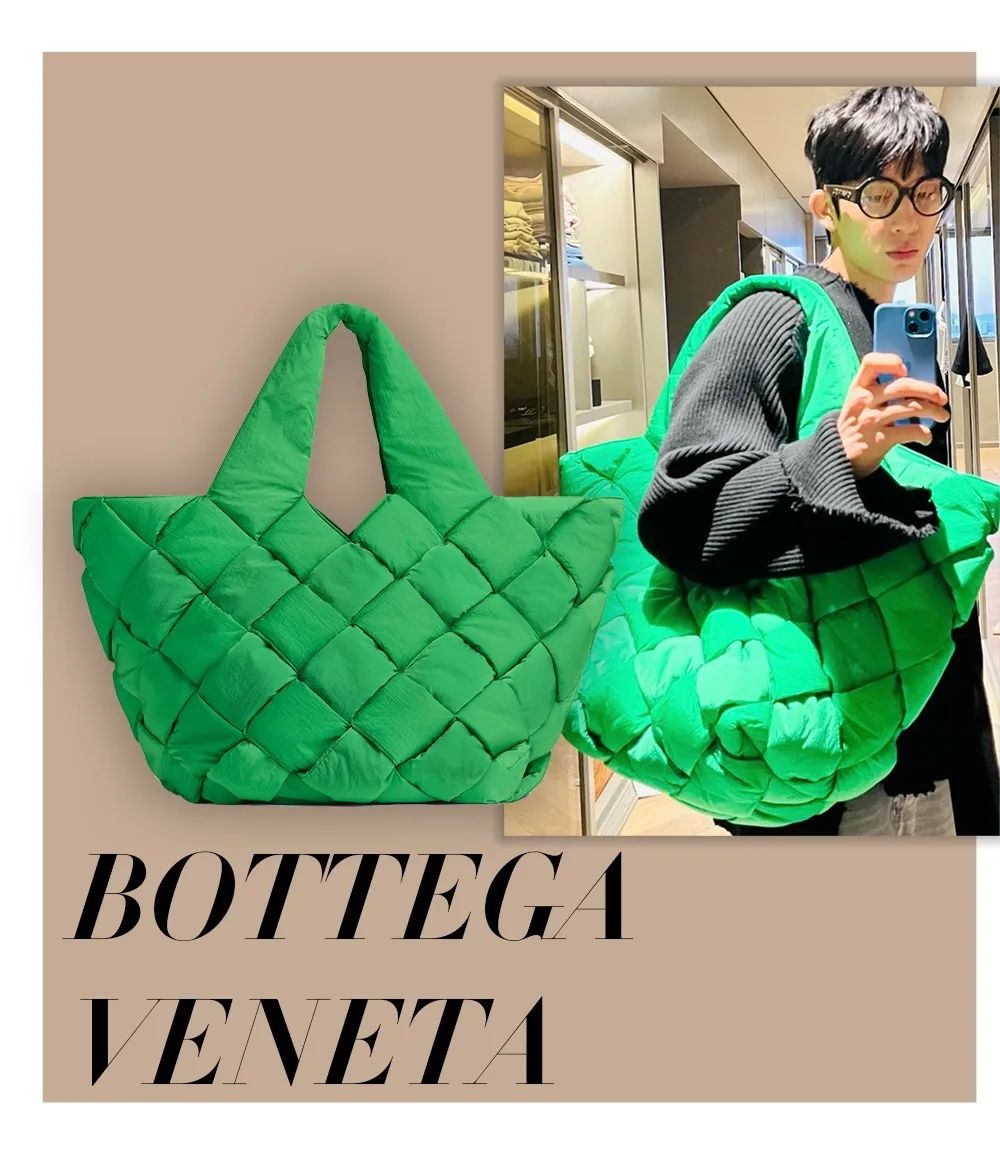 就连很考验穿搭技巧的Bottega Veneta Cassette手袋,井宝也能搭配出随意的时髦感。这样的包款原来不只存在于大片里,日常中利用好大包的存在感,跳脱的绿色可以为ootd增添亮点。