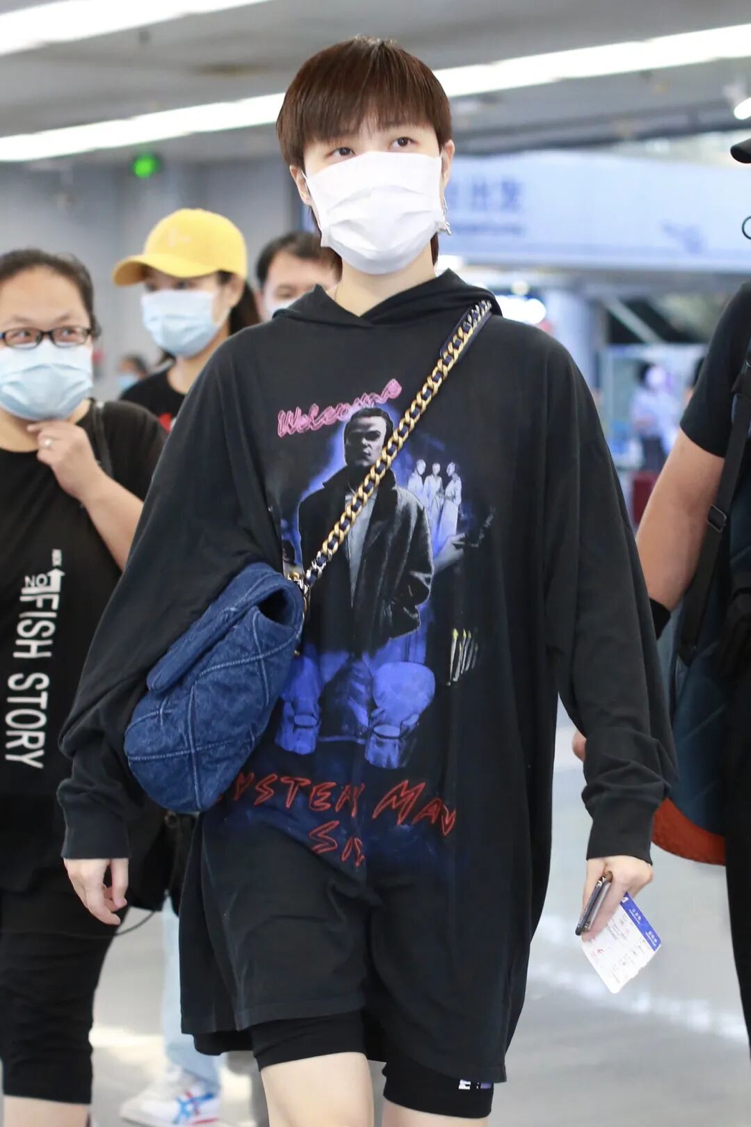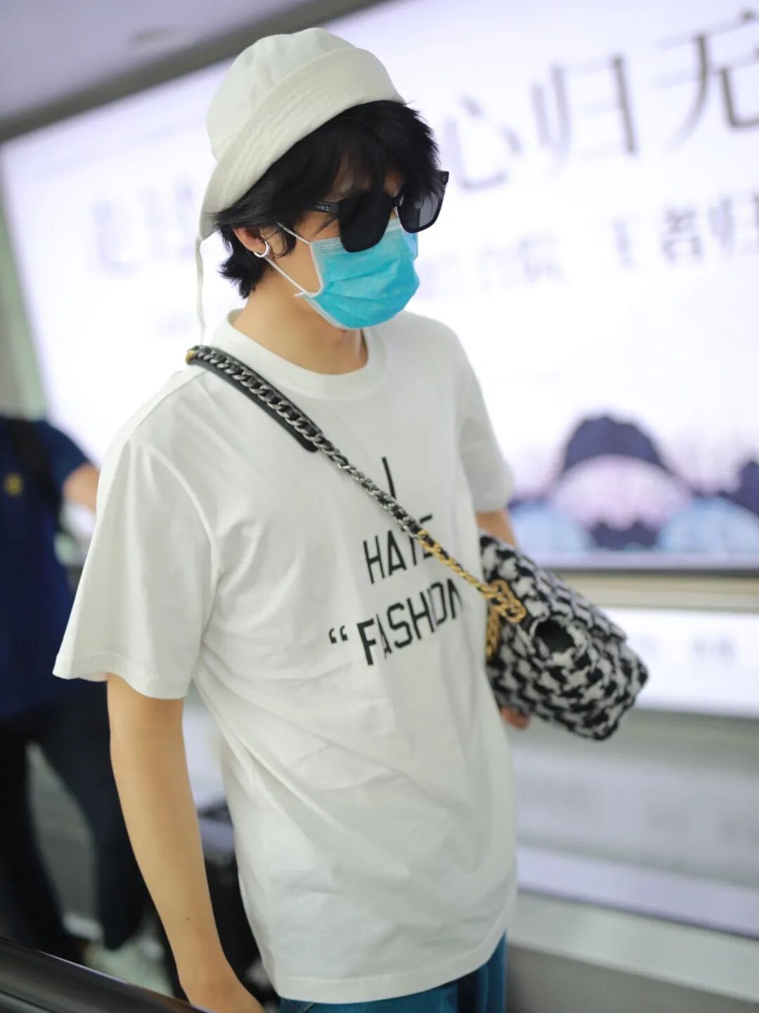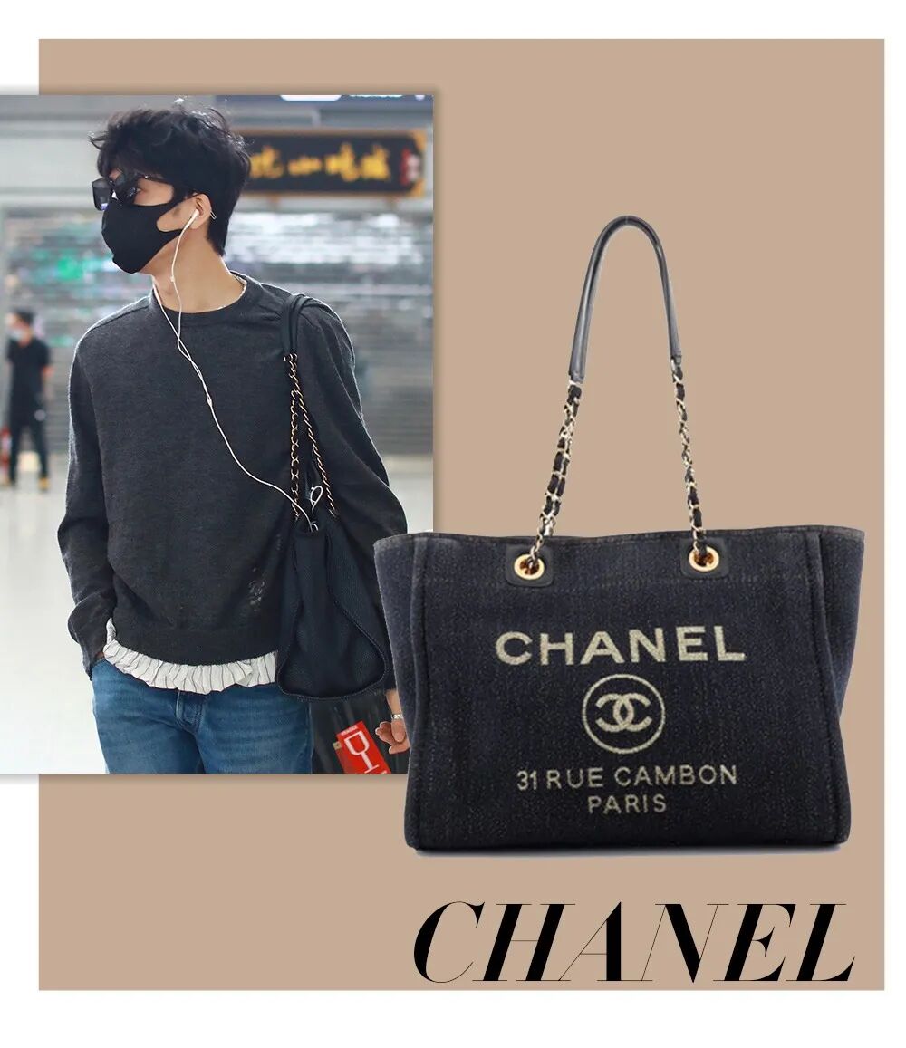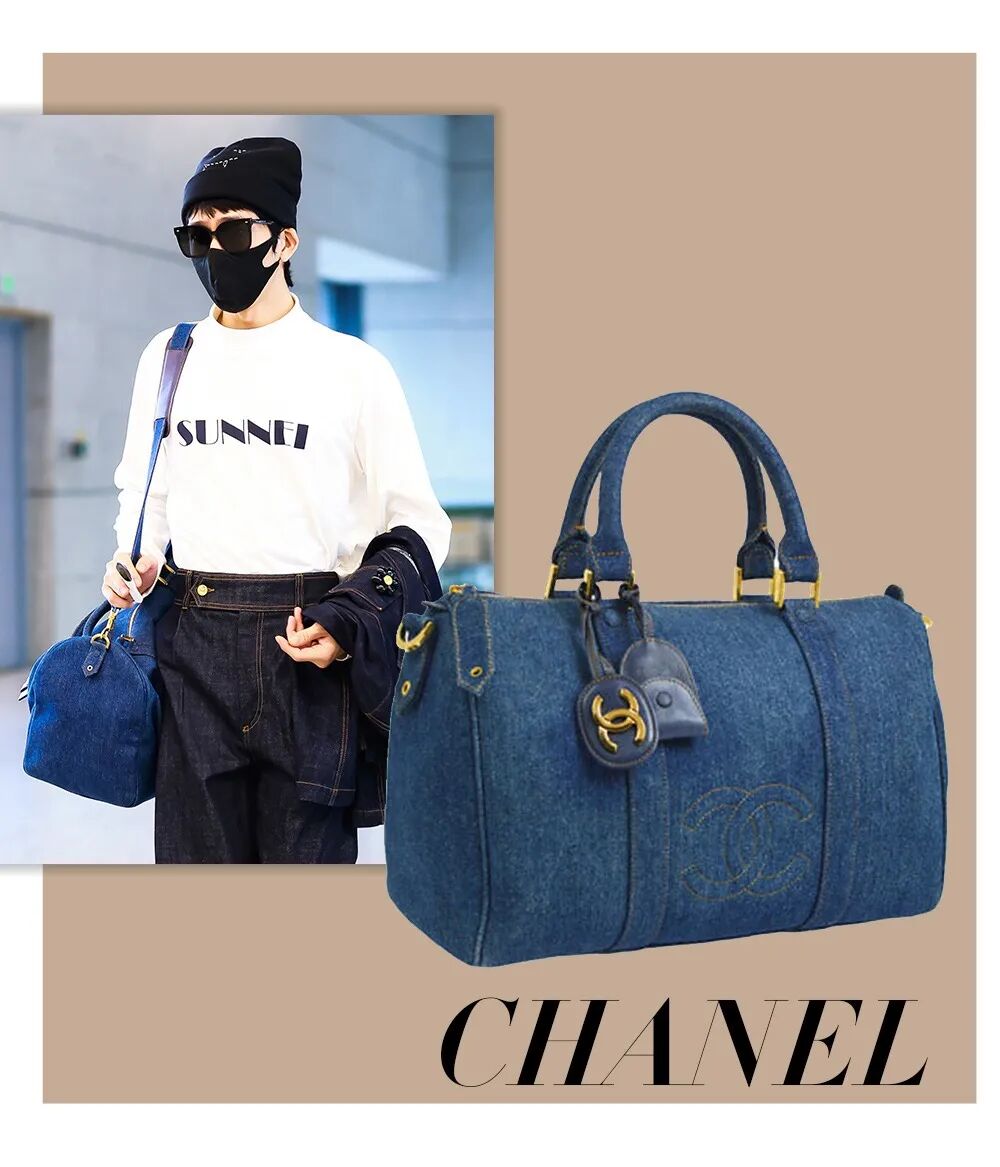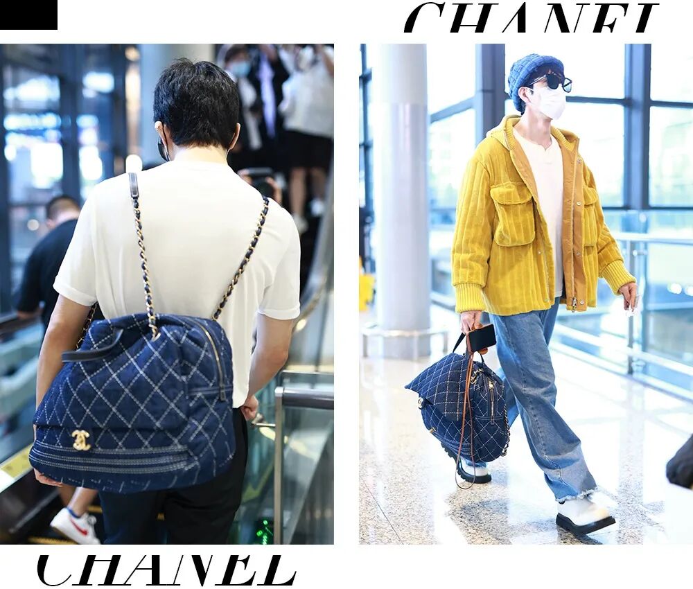 曾在2020早春度假系列中出场的超大号丹宁Clutch bag,一度成为他在机场街拍中出镜次数最多的一只包。Chanel这种超大号的包包真的很适合流浪包背法,凸显出了大包的随意感还能优化身材比例。