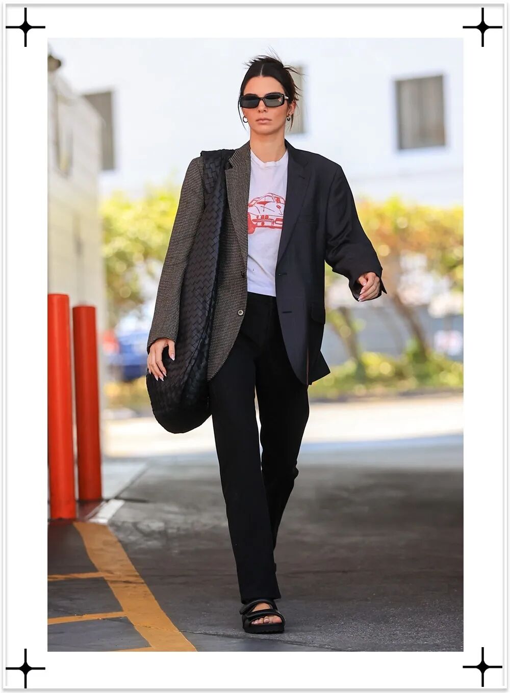 包包位置不过臀线是大包对于比例最友好的高度,就算是身高如Kendall,也能明显感觉到左侧包包的大小优化比例的效果更佳。