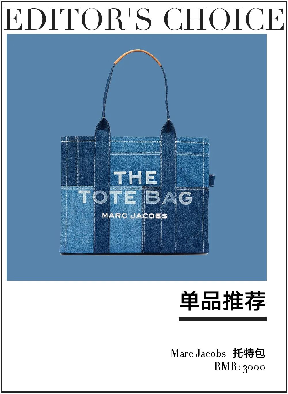 Marc Jacobs自从推出了Heaven系列,配色就大胆年轻了起来,这款牛仔拼接的款式真的很特别。