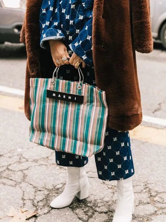 每季都在推出全新配色的Marni Market除了很火的菜篮子和毛线包,这款冷门的尼龙包不要太实用,大小刚好可以放下电脑和一些杂物。