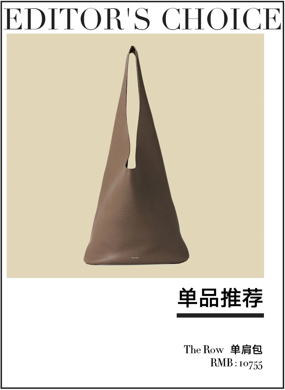官方身高155cm的Zoe非常钟爱的这只The Row,皮质柔软,所以即使容量大单肩背起来也不会比例失调。