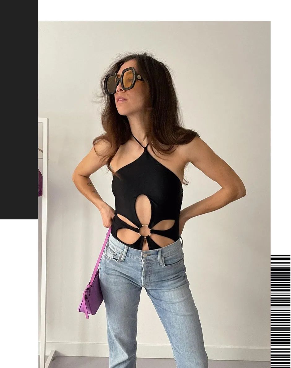 素净的白色镂空花上衣,绝对可以成为衣橱中最百搭的一件。紧身花朵形状镂空上衣搭配牛仔裤,帅气和性感中和得恰到好处。