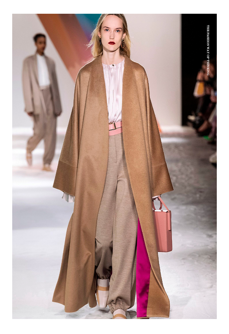 大衣的高腰带能够修饰身材轮廓,可以像Jil Sander将腰带作为设计的一部分,与大衣本身设计融为一体,或如Givenchy作为单独配饰系在大衣外。